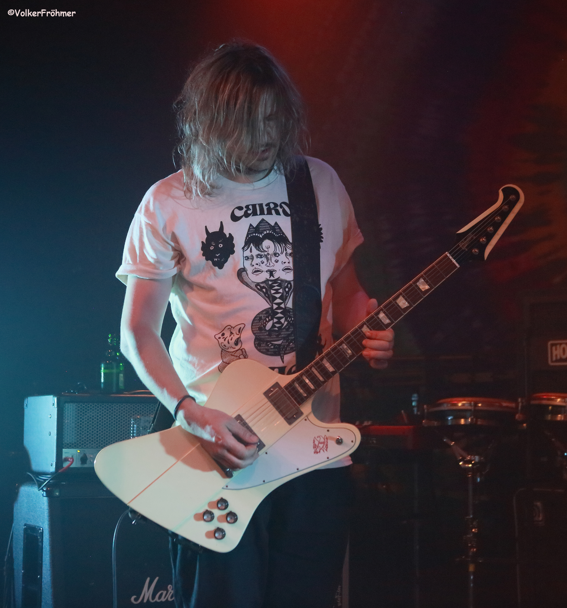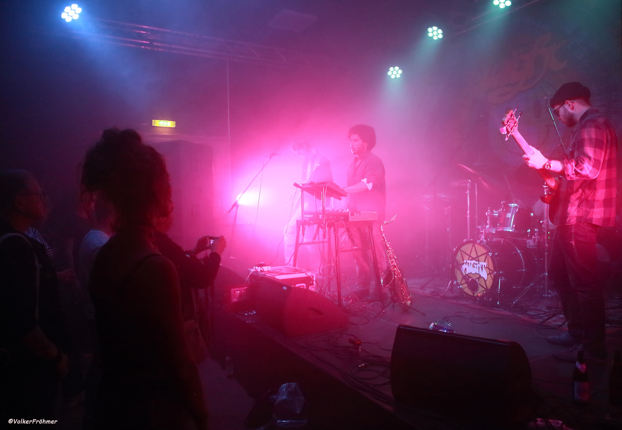 Lucid Void sah ich heute. meine ich. zum sechsten Mal seit 2018, damals (er)öffneten sie in Wiesbaden die Sound Of Liberation Sause Showcase Special und gefielen mir mit ihrer Musik ungemein: Causa Sui, ohne sie abzukupfern, sind sicherlich ein Vorbild, ein bissel Jazz wird auch eingestreut, KrautRock steht auch auf ihrem Zettel und das Ganze wird mit einem Psychmantel umgeben: Bela-Bass, Jakob-Gitarre, Max-Drums und Samba-Tasten und Sax. Ihre Instrumentalreisen waberten durch den Saal, gefühlvoll, sanft, aber auch mal das Fett in der Pfanne anbratend.