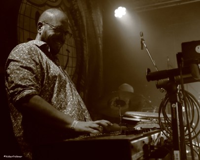 René-Conferencier, Gesang, Gitarre, Peter-Philipp-Bass, Backgroundgesang, Steffen-Percussion, Synthesizer, Backgroundgesang und Thomas-Schlagzeug sind Wight, die seit einiger Zeit mit ihrer Musik völlig aus der Reihe tanzen: Tanzbeine aktivierend, Groove wie die Hölle, eine Mischung aus afrikanischen, jazzigen, funkigen, Beatleslesken, souligen, mitunter harten, intensiven Rhythmiken. Eine für mich großartige Verschmelzung vieler Musikstile die in diesen Zeiten seinesgleichen sucht, aber nicht findet: man macht das Spaß ihnen auf der Bühne zu folgen, da kannste gar nicht anders, da musste mit! Und auf der Bühne ist was los: da knallen die Champagnerkorken aus vielen Tönen, da fliegen die Haare bei Peter-Philipp und René, bei Steffen und Thomas eher weniger. Da gehen Spaß und Können eine Allianz ein: ein Quartett Infernal! Emotional, genial, infernal, mitunter brachial, auch sakral: eine Liveshow die in meine Top Ten des Jahres reingroovt. Ihr Auftritt vor einigen Monaten im Sonic Ballroom in Köln war schon klasse, aber das heute Abend übertraf das noch: wunderbar.