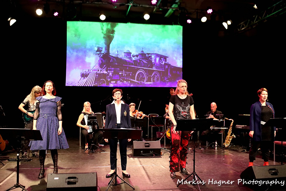 Den Auftakt zelebrierten die Ladies & Gentlemen natürlich mit „Locomotive Breath“, dem Jethro Tull Klassiker, in deutscher Sprache. Katy aus dem Spring, Julie Comparini, Evelyn Gramel & Manja Stephan manifestierten dabei bereits Ihre gesanglichen Extravaganz-Talente.