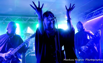 Bei „Blood On The Rose“ hielt der hexerische Gesang den Teufel von den headbangenden Fans und Band fern. „Never Ending Love“ begeisterte durch die infernalen Gitarren-Duelle. „Hunt At Night“, zu dem es auf youtube auch ein kultiges vampiristisches Video gibt, wurde zum Highlight des Sets. „Spirit Of Death“ wurde zum musikalischen Nackenbrecher. Die Gitarren-Armada bot final Ihre Soli dar.