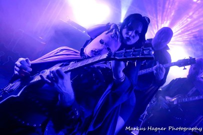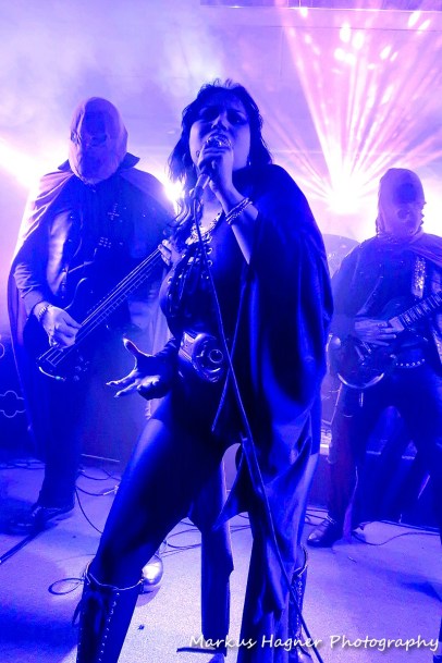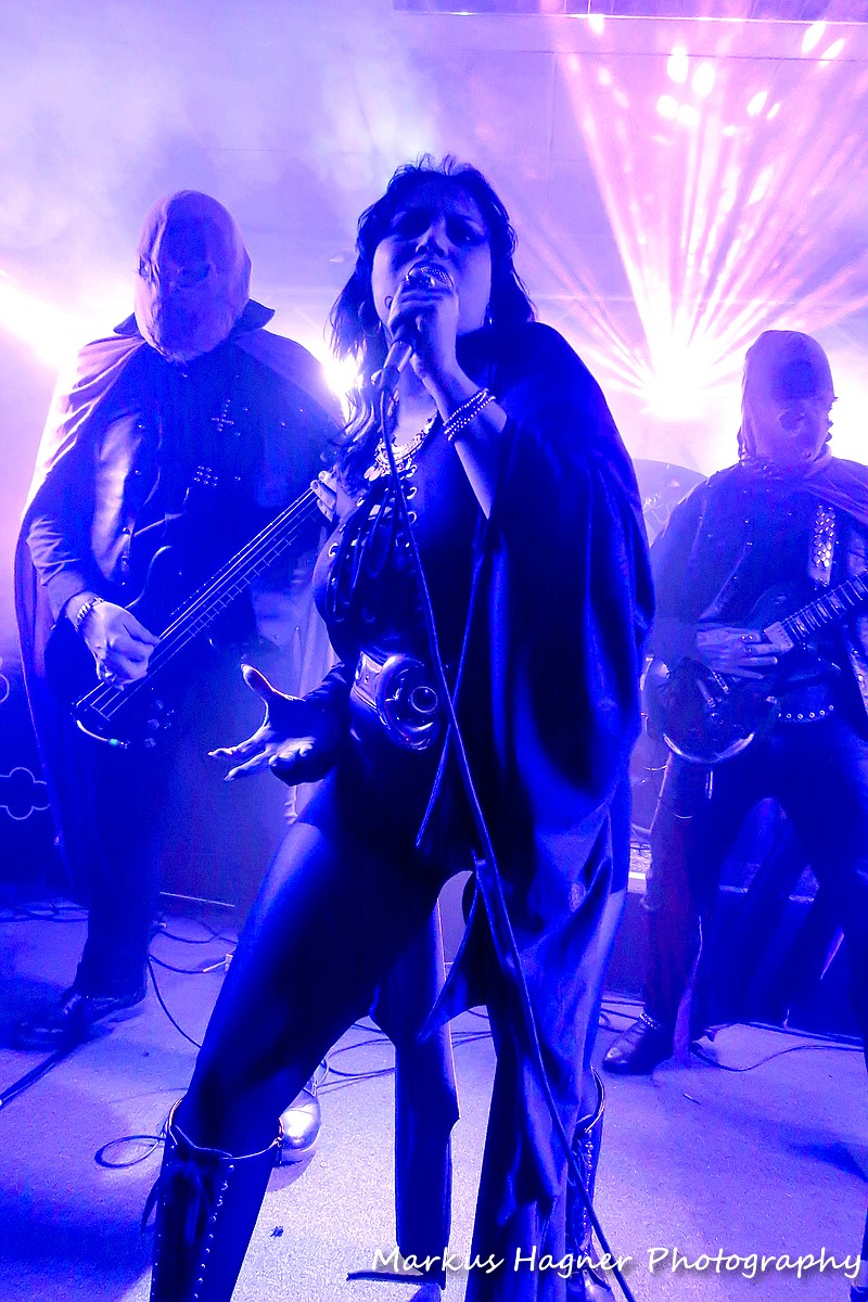 Die Metal-Freaks waren aus dem Häuschen ob dieser Power. Die spannende Songstruktur vom folgenden „The Cult“ sorgte für Extravaganz. Lady Gabriel verzauberte mit Ihrem Gesang. Herausragend dabei waren die abwechselnden, virtuosen Gitarren-Soli von Andy Wave und Kuba Galwas, Der Refrain lud die Fans auch zum Mitsingen ein. „The Witch Is Back“ wurde eingeleitet durch einen Urschrei von Marta und es folgte ein Extravaganz-Metal-Gewitter.