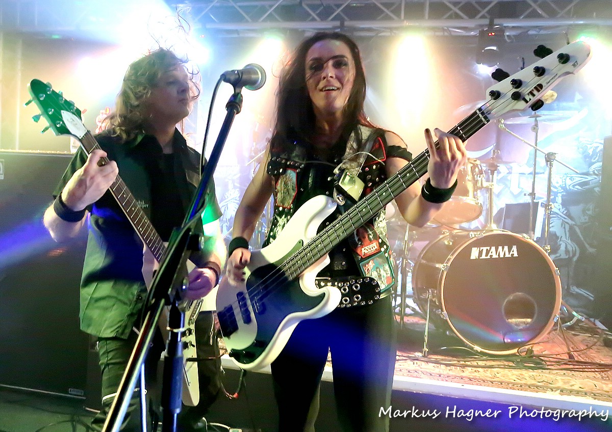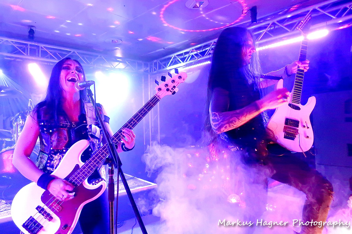 Nach den ersten Tönen, inklusive Trommelwirbeln vom Opener „Fever Of The Gods“ konnte man nur attestieren: „HELL YEAH“, Marta Gabriel als weiblicher Band-Boss verzauberte die Fans mit Ihrem glasklaren, fulminanten Gesang und Ihrer Optik. Sie war ja von der Rhythmus-Gitarre instrumentalistisch zum Bass umgestiegen und sorgte zusammen mit Tomasz Dańczak an den Drums für den Rhythmus.