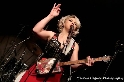 (mh) Samantha Fish betrat die Bühne in sexy rotem Outfit mit schwarzer Biker-Lederweste mit Rosen-Design und legte mit dem MC5-Klassiker „Kick-Out The Jams“ gleich fulminant los. Das war Ihre Reminiszenz an den Rock Ende der 60er Jahre und brachte die Fans in Wallung. In den USA wird Samantha übrigens bei der Ruf-Jubiläumstournee Mitch Ryder als Special Guest auf der Bühne haben. Beim folgenden Groove-Rocker „Wild Heart“ manifestierte Sie Ihre Slide-Exzellenz bei Ihren Soli. Die Fans waren aus dem Häuschen. Vokalistisch kam Ihre Stimme live bei weitem imposanter rüber was Sie beim souligen „Better Be Lonely“ bewies. Fans von Amy Winehouse waren bei „Chills And Fever“ begeistert. Gitarristisches Highlight waren Ihre Slide-Soli auf der „Cigar-Box“-Gitarre, da ging höllisch die Post ab. Die Fabrik wurde zum Tollhaus. Bei „Poor Black Mattie“, ein R.L. Burnside Cover, zelebrierte Sie Ihre stilistische Spielstil-Vielfalt im „Hillside-Mississippi Country-Blues“.