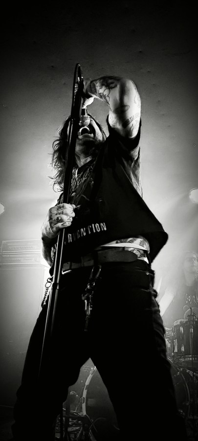 Zum Start des Abends zeigten PROPHET & FLESH aus dem Westerwald, dass auch sie sich ganz klar der klassischen Metal-Schule verschrieben haben – aber auf ihre eigene Art. Ihr Set war geprägt von direkter Energie, fokussierter Performance und einem Sound, der mehr an klassische Metal-Formeln erinnerte als an ausgefeilte Klangexperimente und Endzeit.