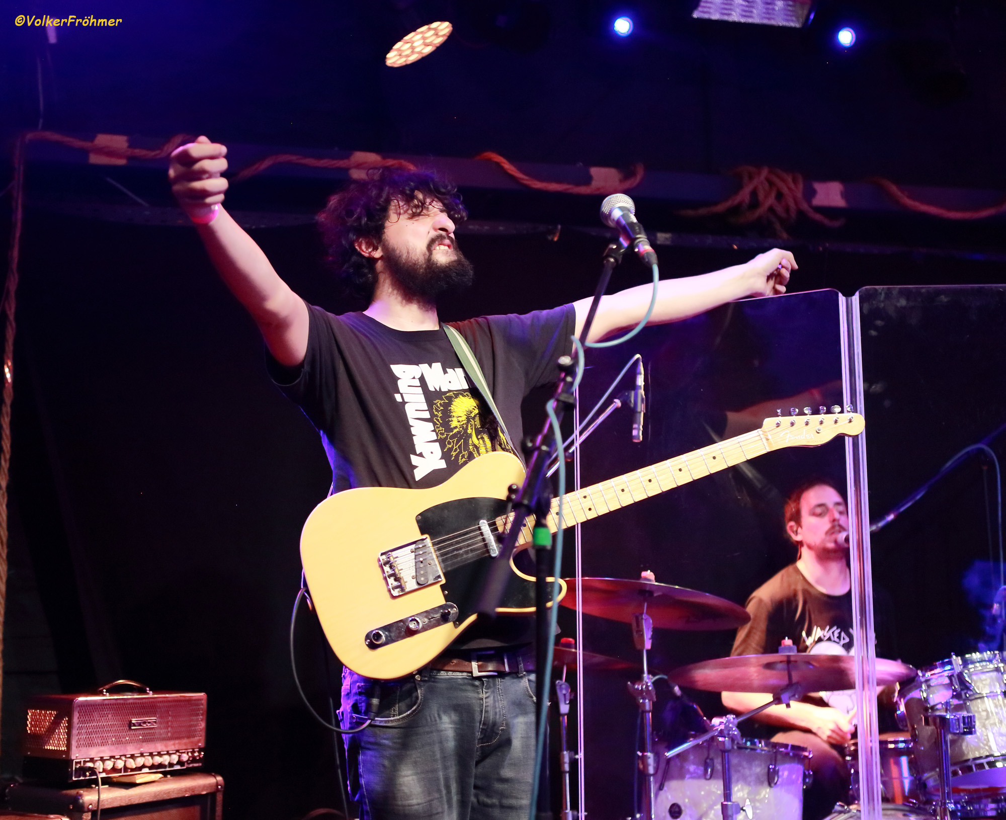 Francesco – Gitarre, Gesang, Alessandro – Bass und Zweitstimme und Giorgio – Schlagzeug und Stimme hauten alles raus das die Wände wackelten: Fuzz, Fuzz und nochmals Fuzz. Feist, fett, heavy, knallig. Melting Pop, so der Titel ihrer im Februar erschienenen Platte bei Heavy Psych Records, stampfte dermaßen durchs Geviert, dass selbst das Plexiglas, das feste im Takt mitbangte, schwitzte: beste Vollbedienung für das Volk vor der Bühne: wir alle waren Fuzz Populi!