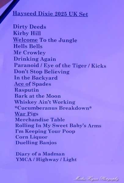 Mit „Dirty Deeds ging die Party los und die Rock’N Roll Lokomotive war nicht mehr zu stoppen! Die Eigenkomposition „Kirby Hill folgte“! Mit „Mr. Crowley“ & „Paranoid“ und „Ace Of Spades“ wurde Ozzy, Sabbath und Lemmy gehuldigt.