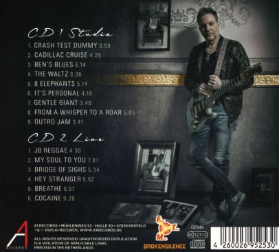 „Crash Test Dummy“ elektrisiert durch das spannende, virtuose Gitarren-Spiel und die -Soli. Diese sind Ben’s Hommage an eines seiner Sechs-Saiten Idole, Jeff Beck. „Cadillac Cruise“ ist top progessiv-rockig. Masa Maijanen am Bass und Jari Salminen am Schlagzeug steuern groovige Rhythmen bei.