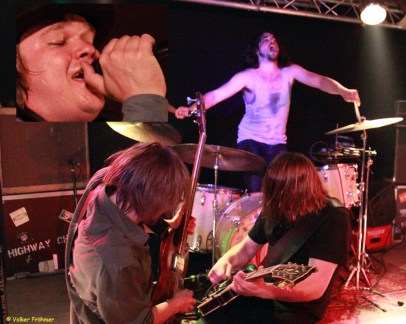 Das Kombynat Robotron aus Kiel, unsere Blogband und unser Blogbeitrag zum FVF. Ihr Robotroniker Claas, Jannes, Tommy: lasst euch nicht von eurem Weg abbringen, das war ne´ berstende Show, vor allen Dingen mit solch einem Opener wie „Staub“. Und wie heißt es so schön im Rockmusikberichterstatterkauderwelsch: die Meute vor der Bühne ging steil….