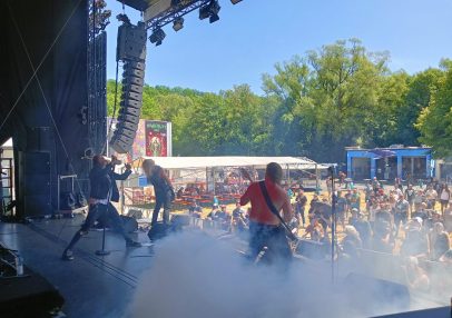 Anmerkungen zu einigen Bands: was nicht nur ich großartig fand war das fulminante Statement von Sängerin Kate der englischen in der Hauptsache Punkband Jools gegen jedwede Frauenfeindlichkeit! Häxer mit großem und kleinem Auftritt voller Punk, Thrash-Metal, und einem der heftigsten Shouter. Battlesnake: australische Volksmusik für Volker und die Freaks: Römerumhänge, Angus Young „Let there be Rock“ Gedächtnis-Gitarrensolo auf starken Schultern durchs Freakvolk, Engelsflügel und einfach eine geile Show.
