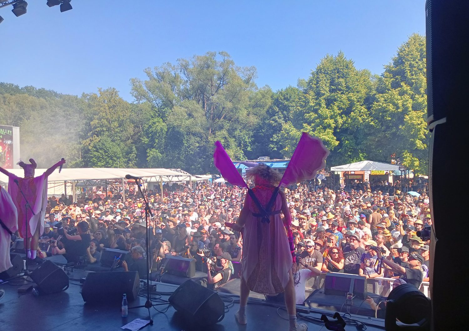 (vo) Nach einem Großeinkauf im Haribo Werksverkauf bei mir umme Ecke in Solingen für unseren Freak Valley Backstage Bereich (auch Musiker mögen Salzlakritz, Gummibärchen und Schnuller) machte ich mich am 18.06.25 auf den Weg zum AWo Gelände in Netphen-Deuz, das mir in den nächsten vier Tagen eine wunderbare Heimstatt war: unser Freak Valley Festival 2025 rief auf zum Tanz. Geladen waren ca. 3000 Freaks und 27 Bands. Der Wettergott war uns in diesen Tagen sehr gewogen und stellte sich heraus als ein großartiger Stoner, Punker, Psychedelicer, Blues Rocker, Doomer, Metaller, Post Rocker. Als ich dann Mittwochnachmittag ankam wurden erstmal die ca. 25 Kilo Süßes ausgeladen