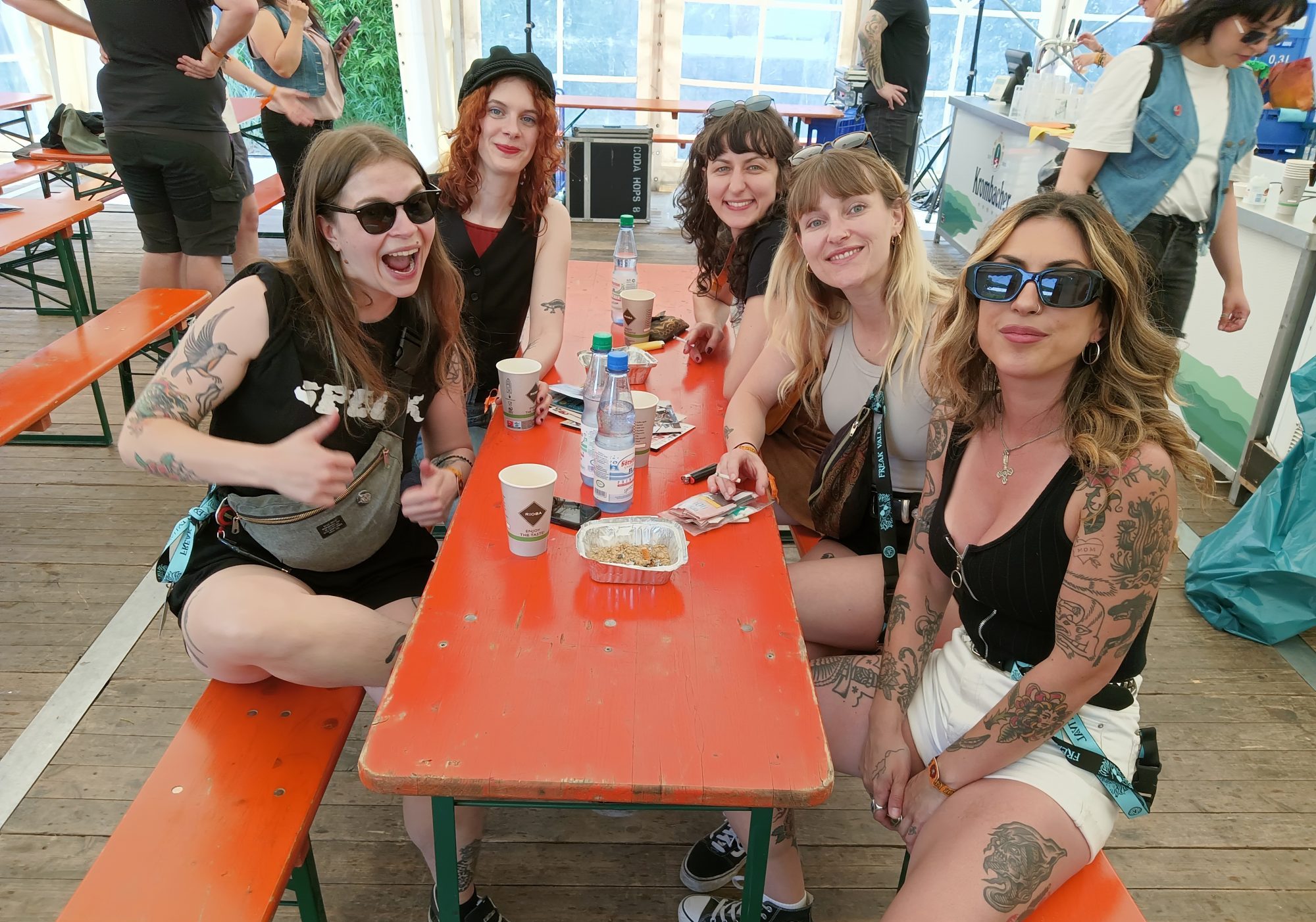 Die vier wunderbaren Mädels der mittlerweile nicht nur österreichischen Psychedelic Institution Lurch: Eva, Marie, Miriam und Pauline: klasse, ohne Schmäh! Dazu gehörte auch Lisa, ihre Fahrerin und Merchfrau.