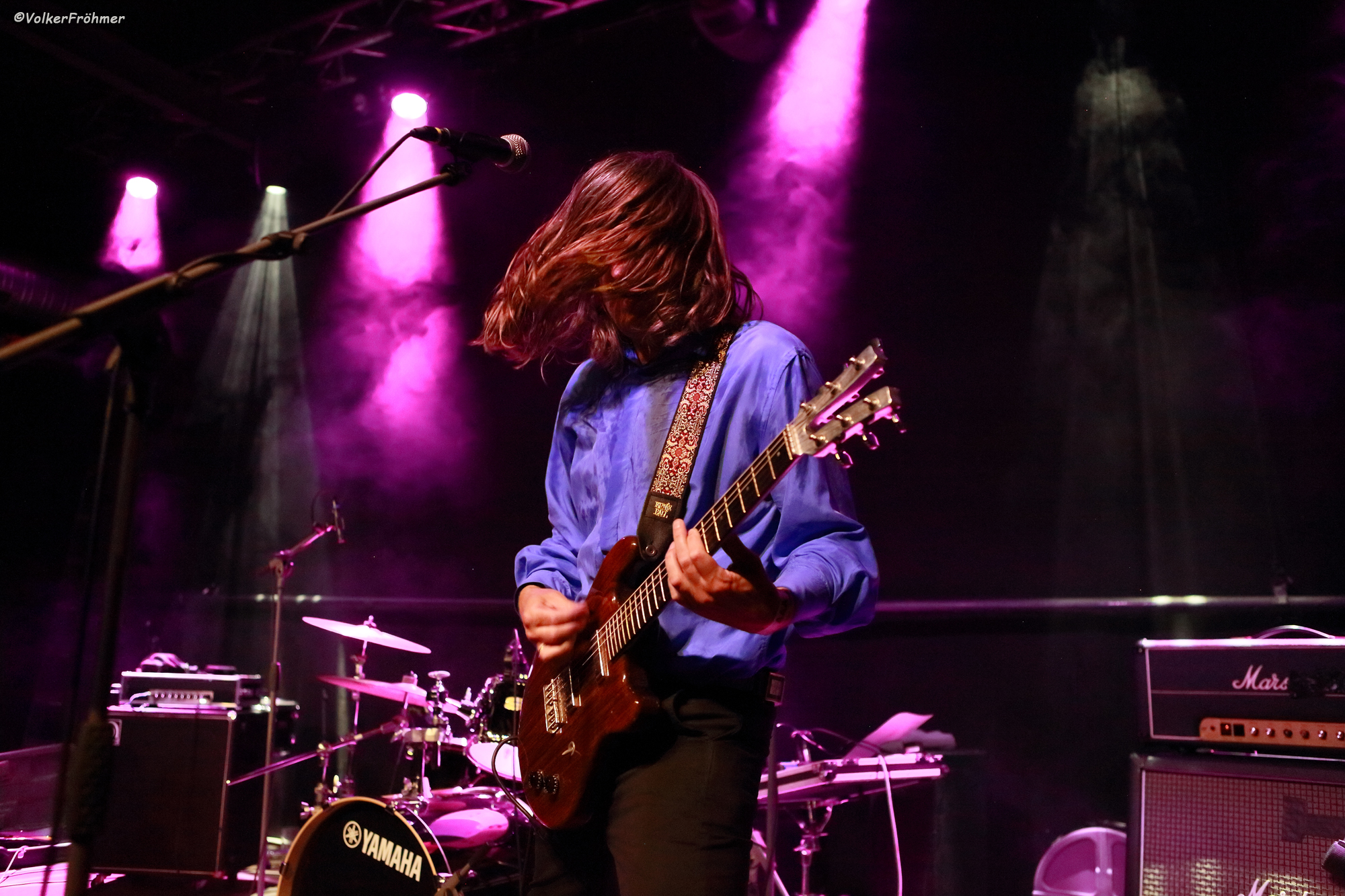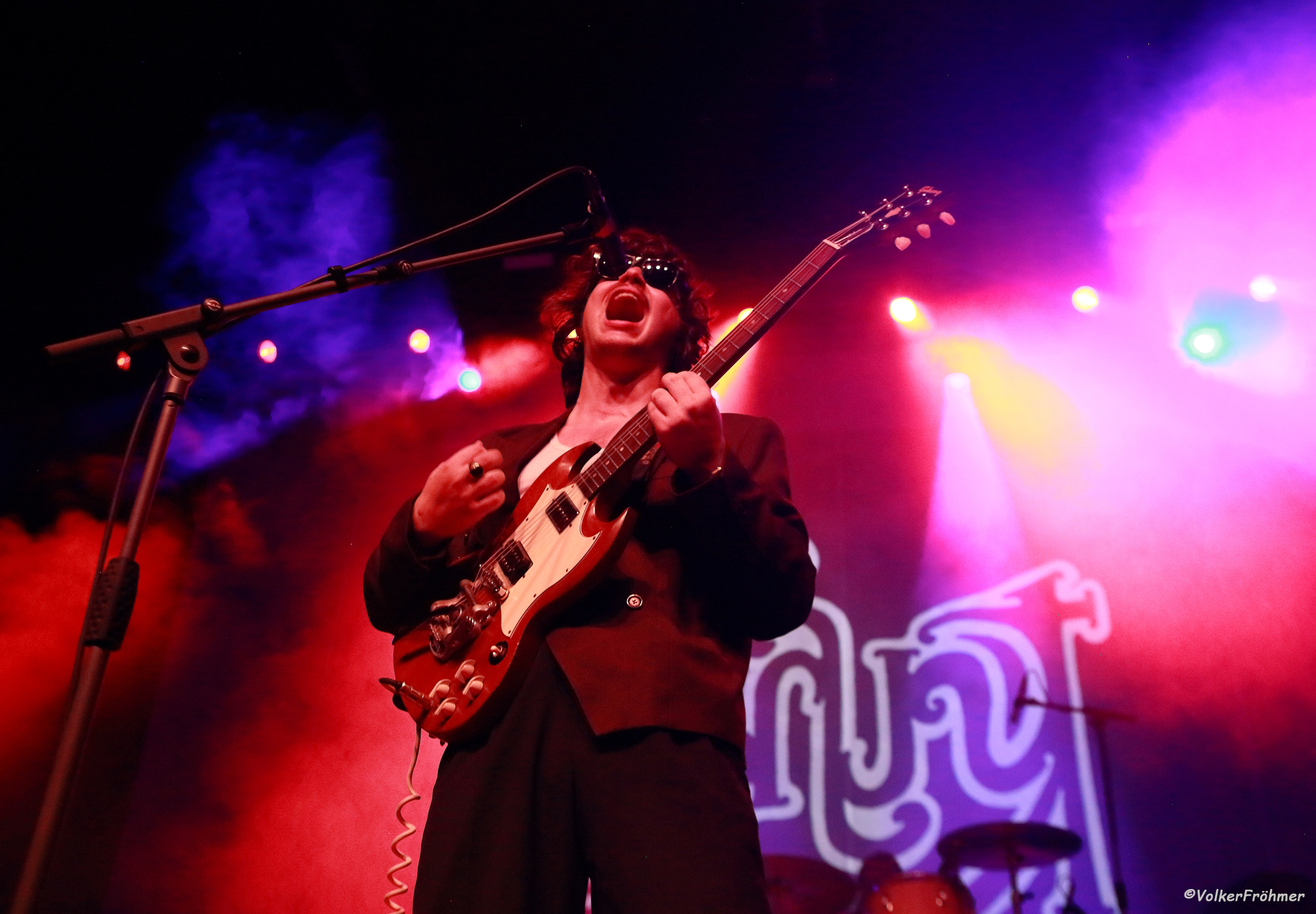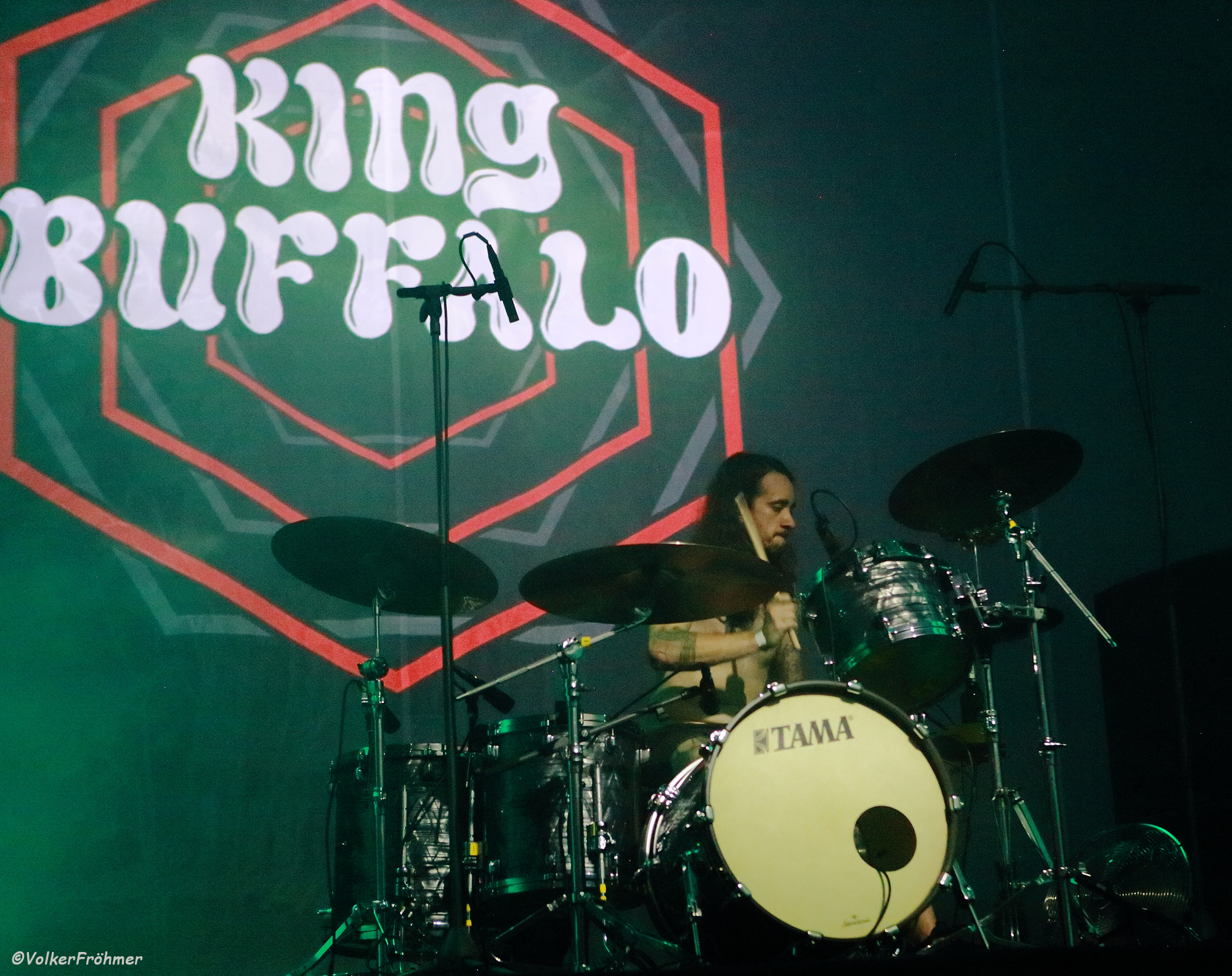 21:10 Uhr KING BUFFALO Schon beim Soundcheck wusle ich herum wie ein Silberfisch im Neonlicht – vor dem FOH, am Bühnenrand, im Graben, Front Row, mitten in der Crowd. Auf der Jagd nach dem Sweet Spot. Ich will ALLES hören. ALLES sehen. Und ehrlich: Ich bin nicht die Einzige. Die Halle vibriert wie ein lebender Organismus – bereit für Trance, Riff und Erlösung. King Buffalo liefern keine Show, sie erschaffen Sphären. Als „Silverfish“ die Luft zerschneidet, ist’s um uns geschehen. Hypnotische Repeats, brodelnder Bass, Sean McVays Stimme wie ein Ruf aus dem Äther. Der Mann ist voll da – mit Augenzwinkern, kleinen Gesten, Körperspannung. Wer weiß, dass er nicht der lauteste Bühnenmensch ist, spürte doppelt, was dieser Abend bedeutet: Präsenz. Verbindung. Ausbruch. Mit „Orion“ wird es fließend und kühl, „Burning“ fackelt alles ab. Die Crowd? Durchgeschwitzt, selig, eins. Und ich? Wünschte mir, mich zu klonen, um jede Perspektive gleichzeitig zu erleben. King Buffalo in Wiesbaden – das war keine Show. Das war ein Zustand.