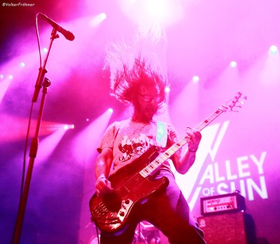17:50 Uhr: Rüber in die gekühlte Halle um Valley Of The Sun die Ehre zu erweisen. Sie sind mit Wilfried, der guten Seele und Tourbegleiter aus Münster unterwegs unter dem Motto: in knapp 50 Tagen durch Europa und sie präsentieren Alt- und Neubewährtes aus 15 Jahren Bandgeschichte. Ryan-Gitarre, Gesang, Chris-Bass und Lex-Schlagzeug heizen die Halle auf und sorgen mit ihrer Farbenfrohen Musik auch für farbenfrohe Photomotive: Dank an die Band und den Lichttechniker.