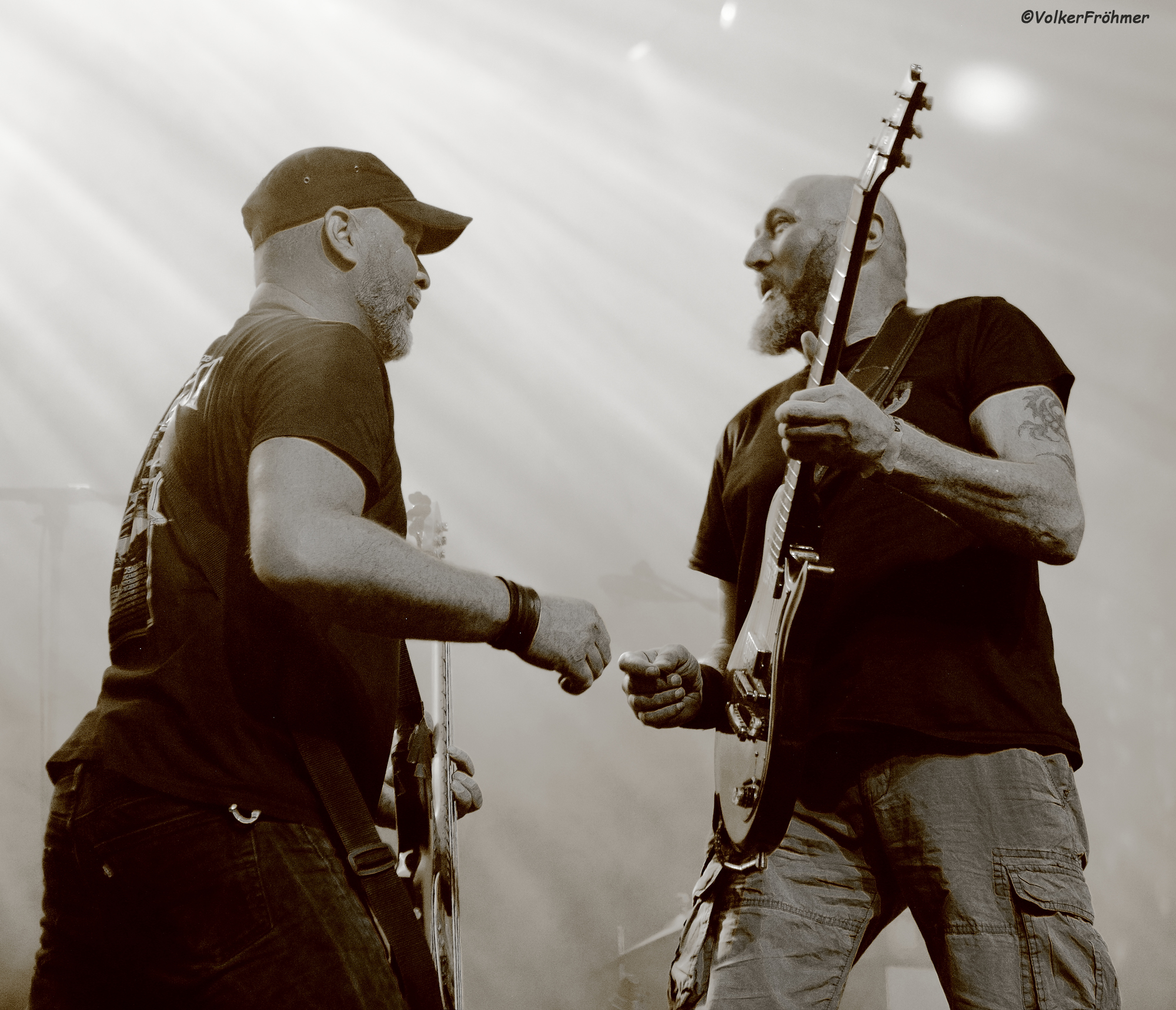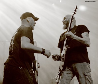 Nach gefühlt 50 Photos von Mephi, die auf der Bühne Motive für die Photographen abgibt (ich mach da mal ´ne Serie raus) die einfach nicht zu toppen sind…..und auch Danny spielt sich fast in Jenseits, die Leute vor der Bühne rasten ein und aus und Torsten schlagwerkt als gäbe es keinen Morgen: was für ein Fest und „let my soul fly“.