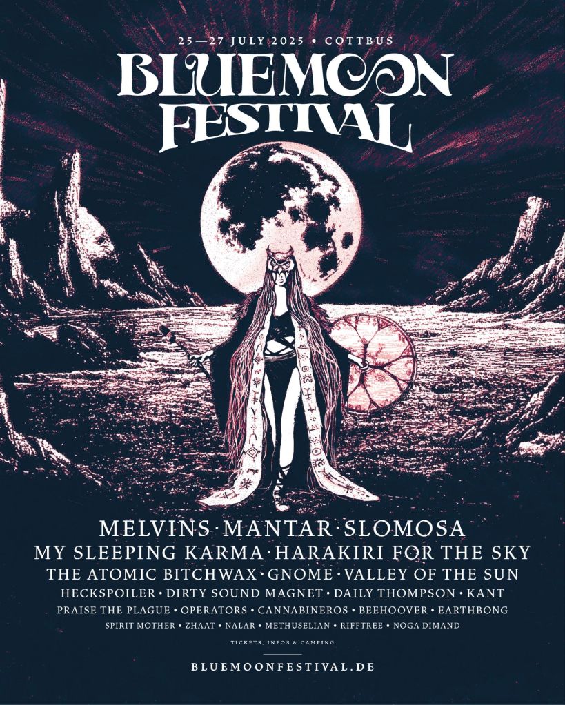 (vo) Rock im Wald 2025: diese Institution in Sachen Festival der Doom, Hardrock, bißchen Metal, Punk, Psychedelic- und Stonerszene feierte vom 24.07. – 26.07.2025 das 30-Jährige. Dazu von dieser Stelle hier vom wackeren Schreiber des RockBlogBluesSpot: Herzlichen Glückwunsch und natürlich auch weiterhin alles Gute! Nach mal wieder einer erlebnisreichen Fahrt über die A 3 (SUV´s, in deren Kofferraum mein Twingo passt, bescherten mich reichlich) ging es mit Zwischenstation in Geiselwind (leckeres Mittagessen bei einer lieben Freundin, die mich dann nach Michelau begleitete) nach Oberfranken: wir hörten schon die ersten Klänge von High Desert Queen. Nach dem Empfang meines Visums zum Einlass ins Festivalgeschehen sah ich auf dem musikalischen Teil des Geländes erstmal grün! Dieser Rasen, dieses grün und was für eins. Mutter Natur und beste Pflege gingen mal wieder eine großartige Koalition ein: was für ein Grün! Den Rest des Beitrags lesen »