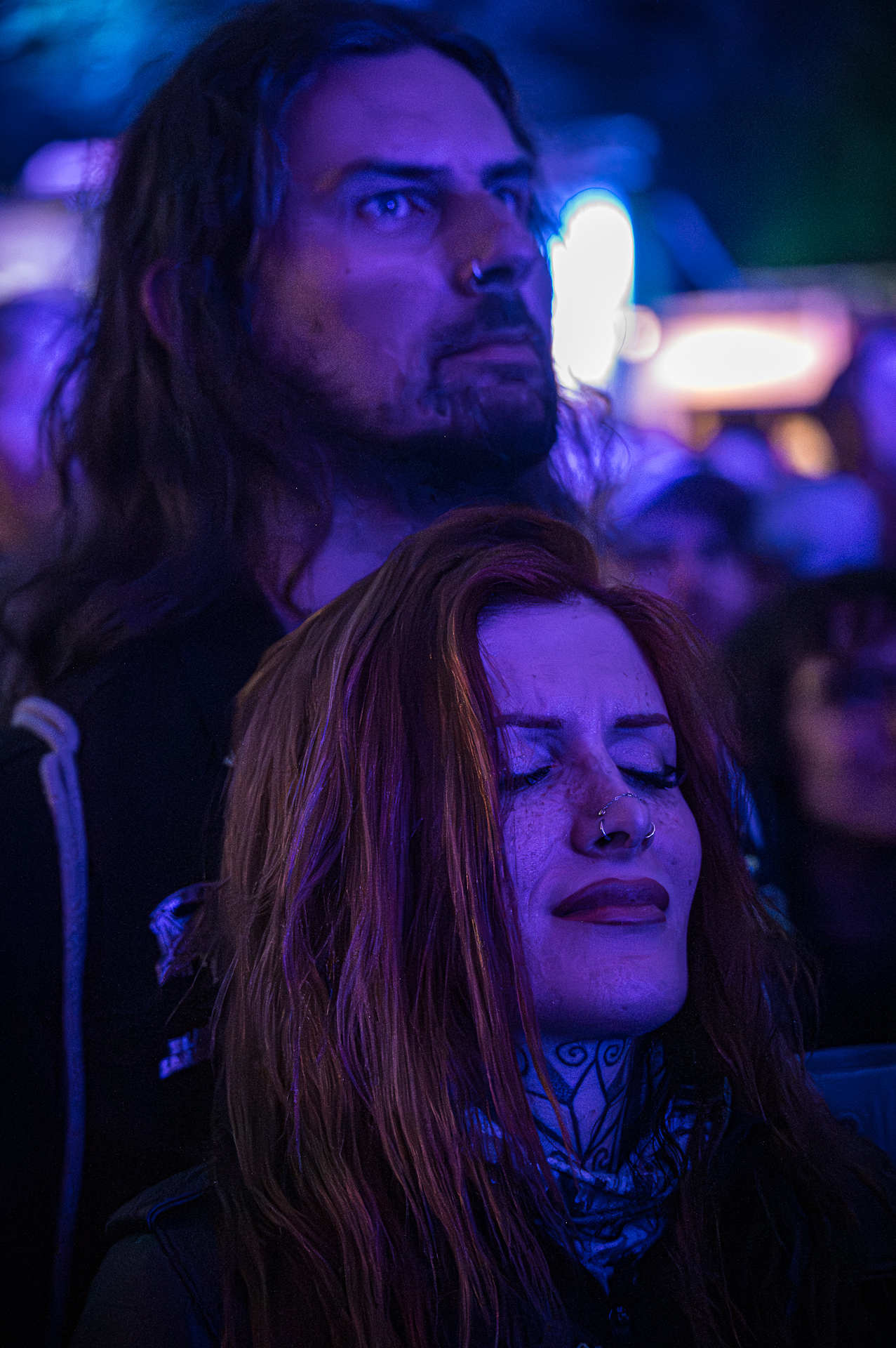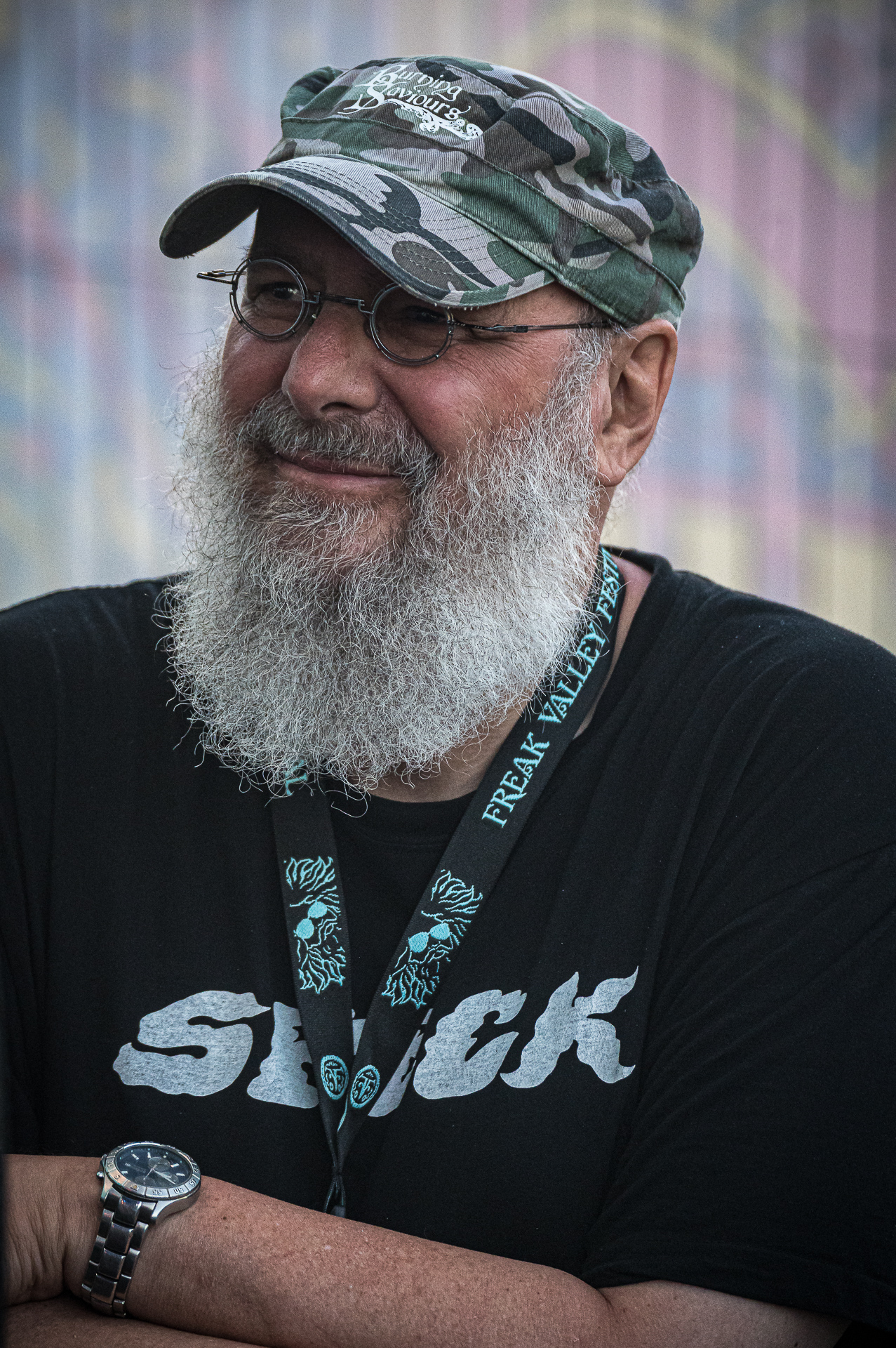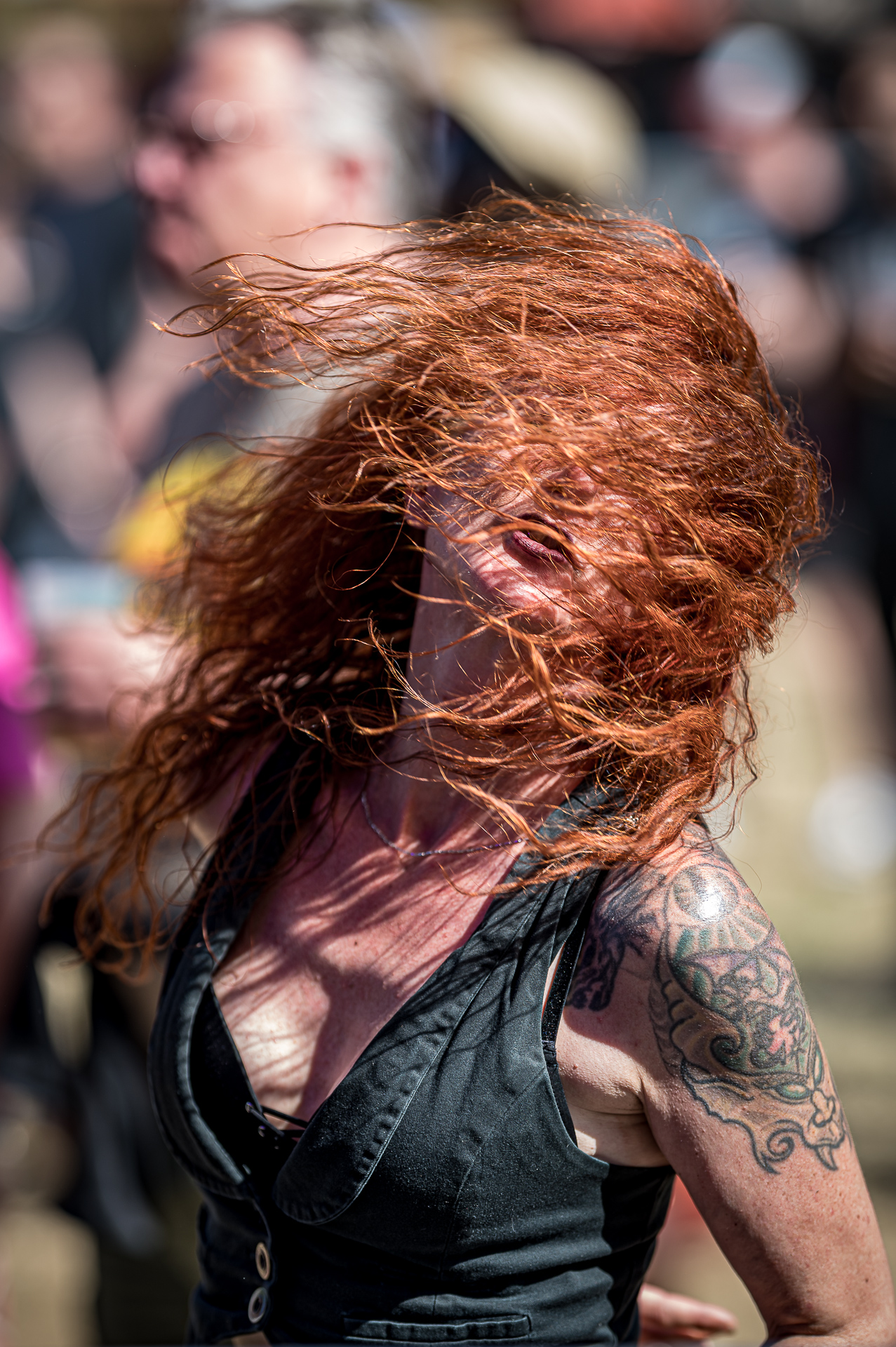 Unter all den Menschen in der Menge, die ich teilweise auch ungefragt festgehalten habe, entdeckte ich am letzten Abend in der ersten Reihe Celina bei THE SWORD. Ihr Gesicht war die meiste Zeit nicht erkennbar, weil es hinter ihrer fliegenden Mähne verschwunden war. Trotzdem konnte ich ihr Lachen sichtbar machen. Es fiel mir schwer zu entscheiden, auf welchem Foto die Haare nun am schönsten fliegen… Aber genau das ist es: Ich will das innere Lachen, die Begeisterung, die Energie sichtbar machen. Und auf dem Freak Valley Festival gibt es unfassbar viel davon.
