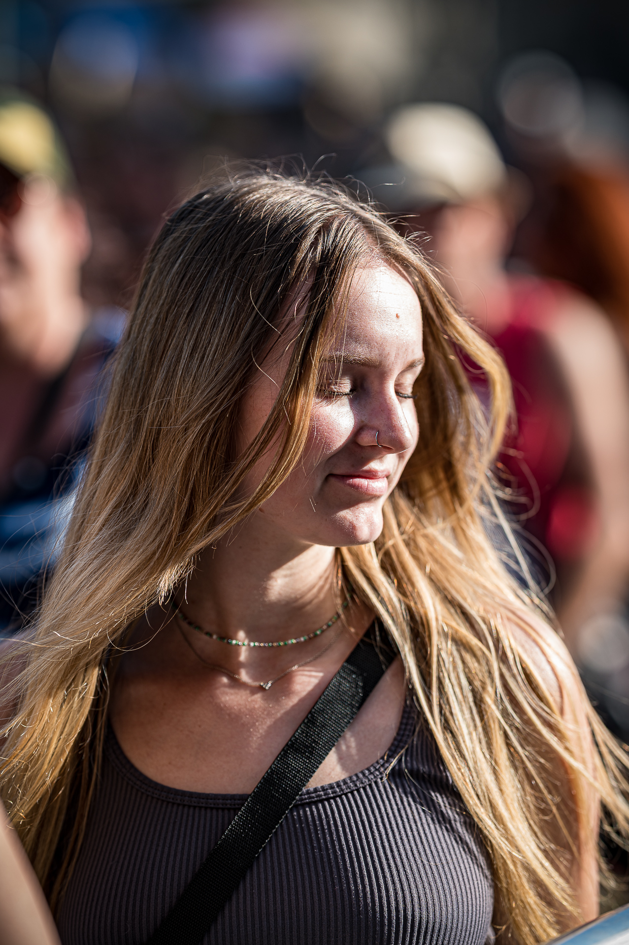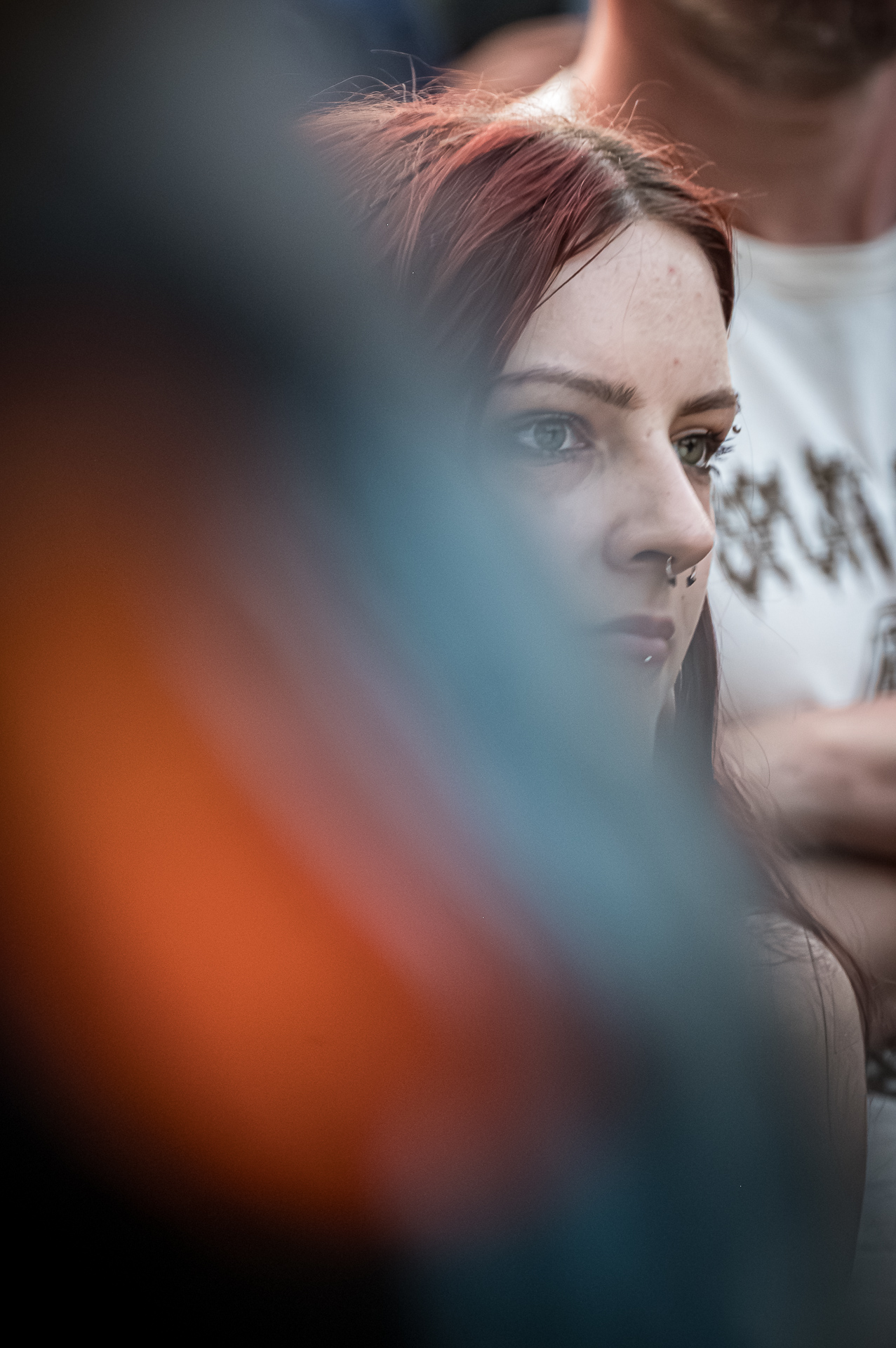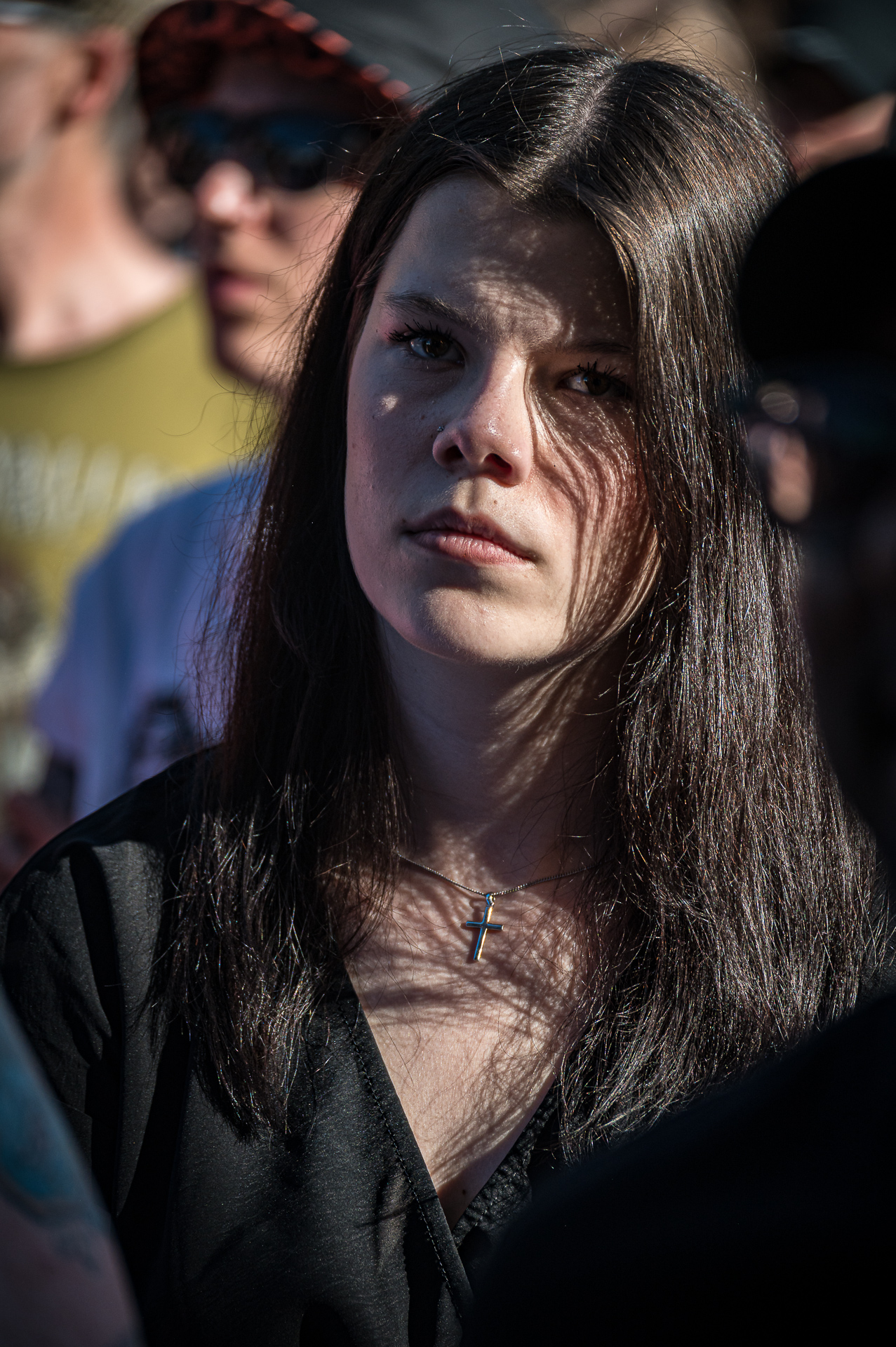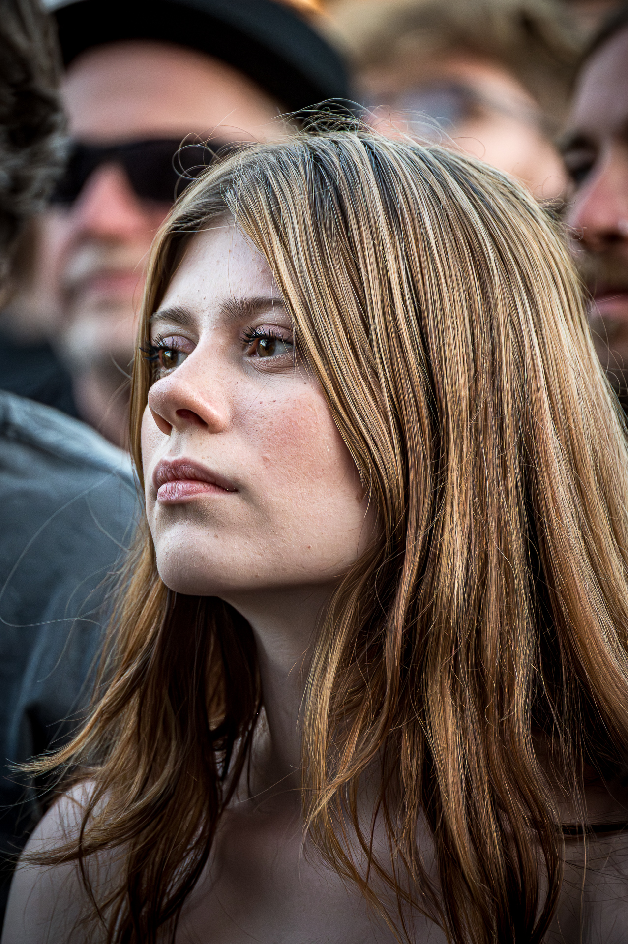 Unter all den Menschen in der Menge, die ich teilweise auch ungefragt festgehalten habe, entdeckte ich am letzten Abend in der ersten Reihe Celina bei THE SWORD. Ihr Gesicht war die meiste Zeit nicht erkennbar, weil es hinter ihrer fliegenden Mähne verschwunden war. Trotzdem konnte ich ihr Lachen sichtbar machen. Es fiel mir schwer zu entscheiden, auf welchem Foto die Haare nun am schönsten fliegen… Aber genau das ist es: Ich will das innere Lachen, die Begeisterung, die Energie sichtbar machen. Und auf dem Freak Valley Festival gibt es unfassbar viel davon.