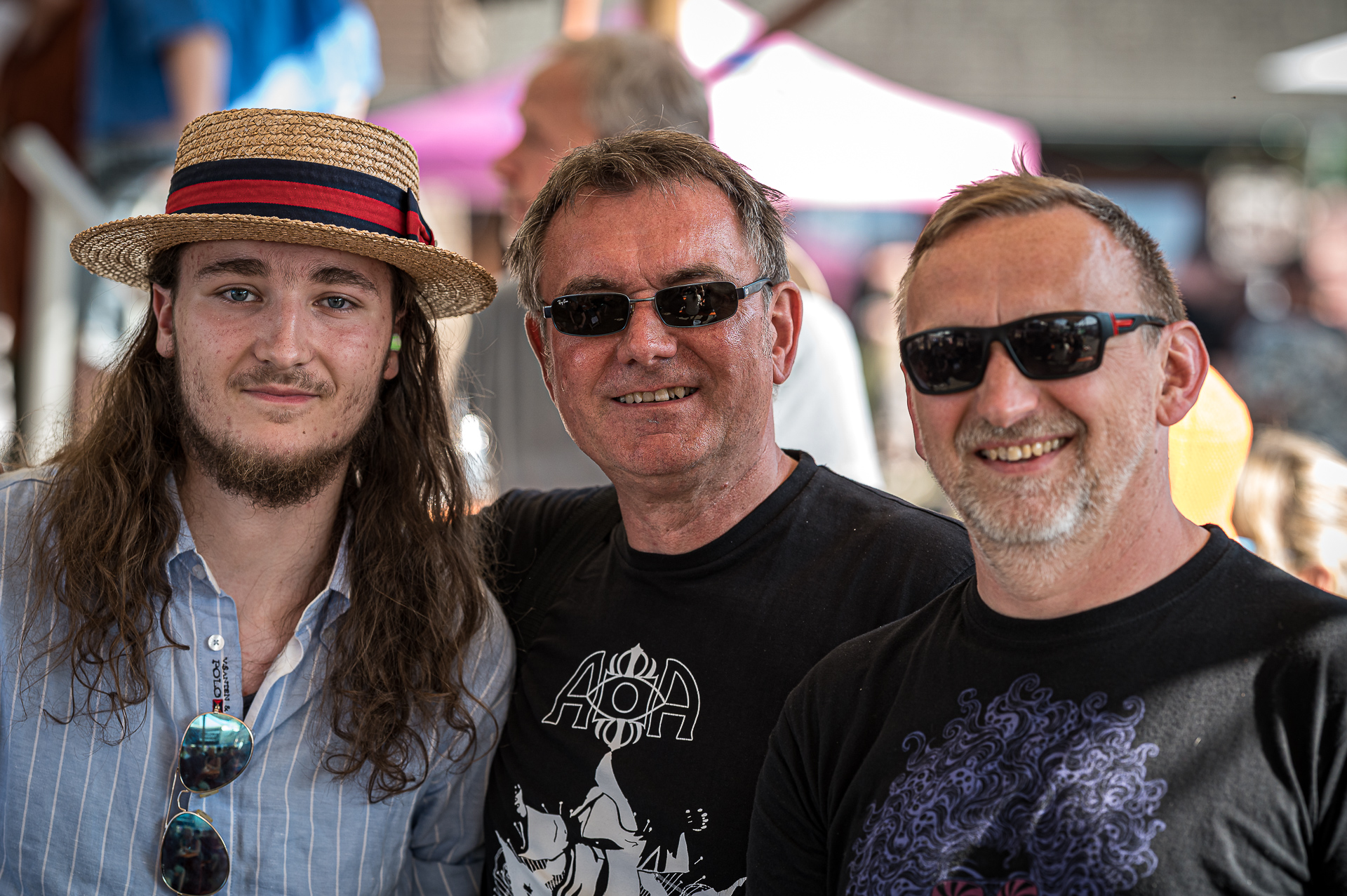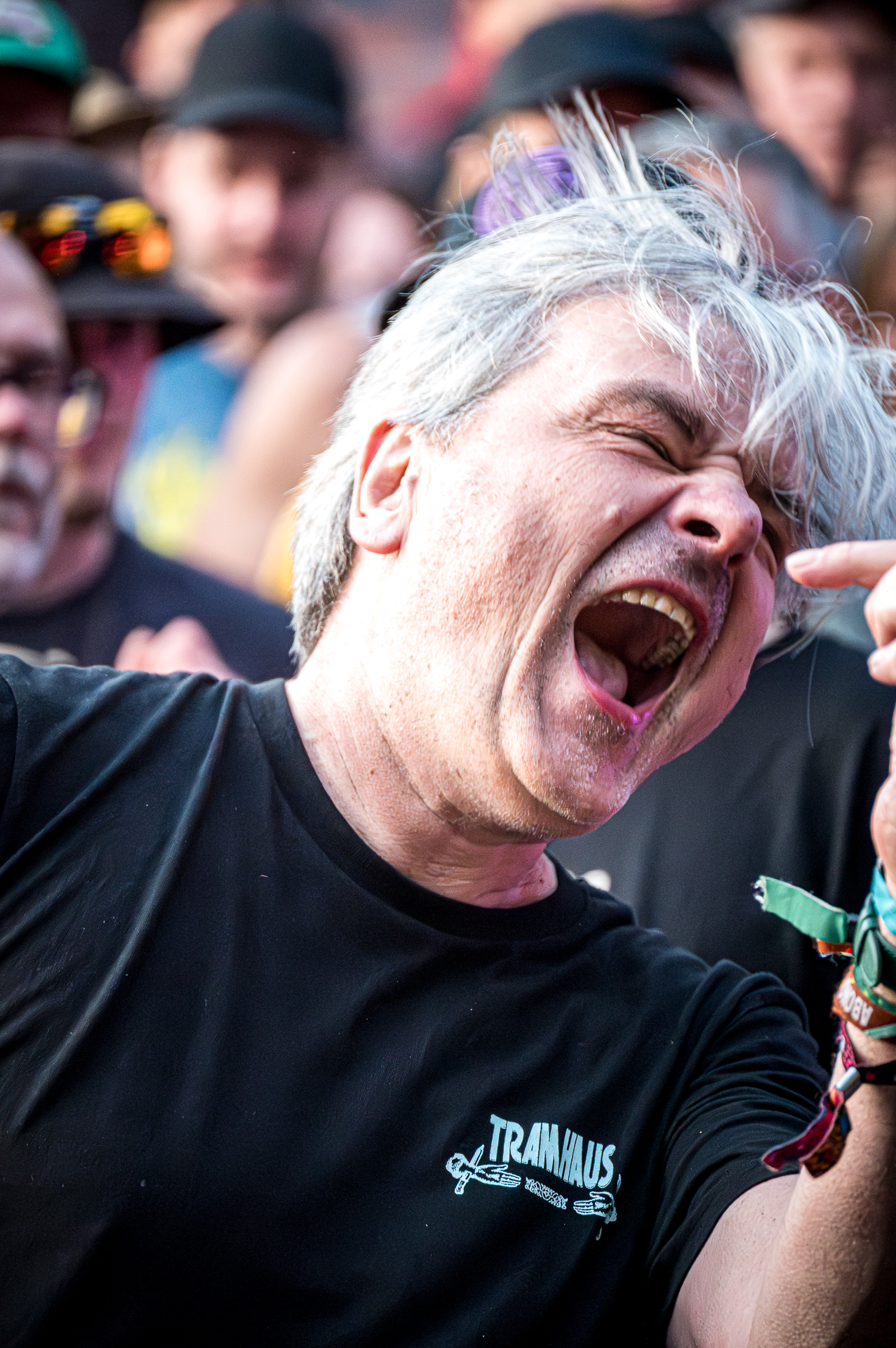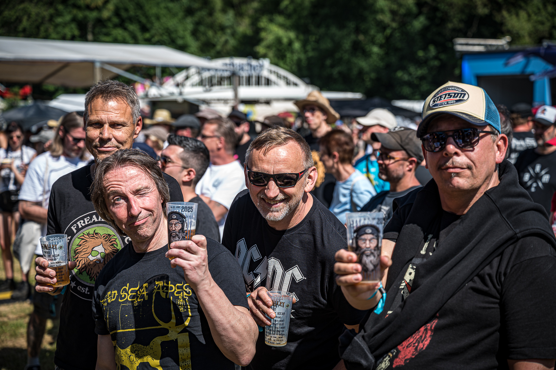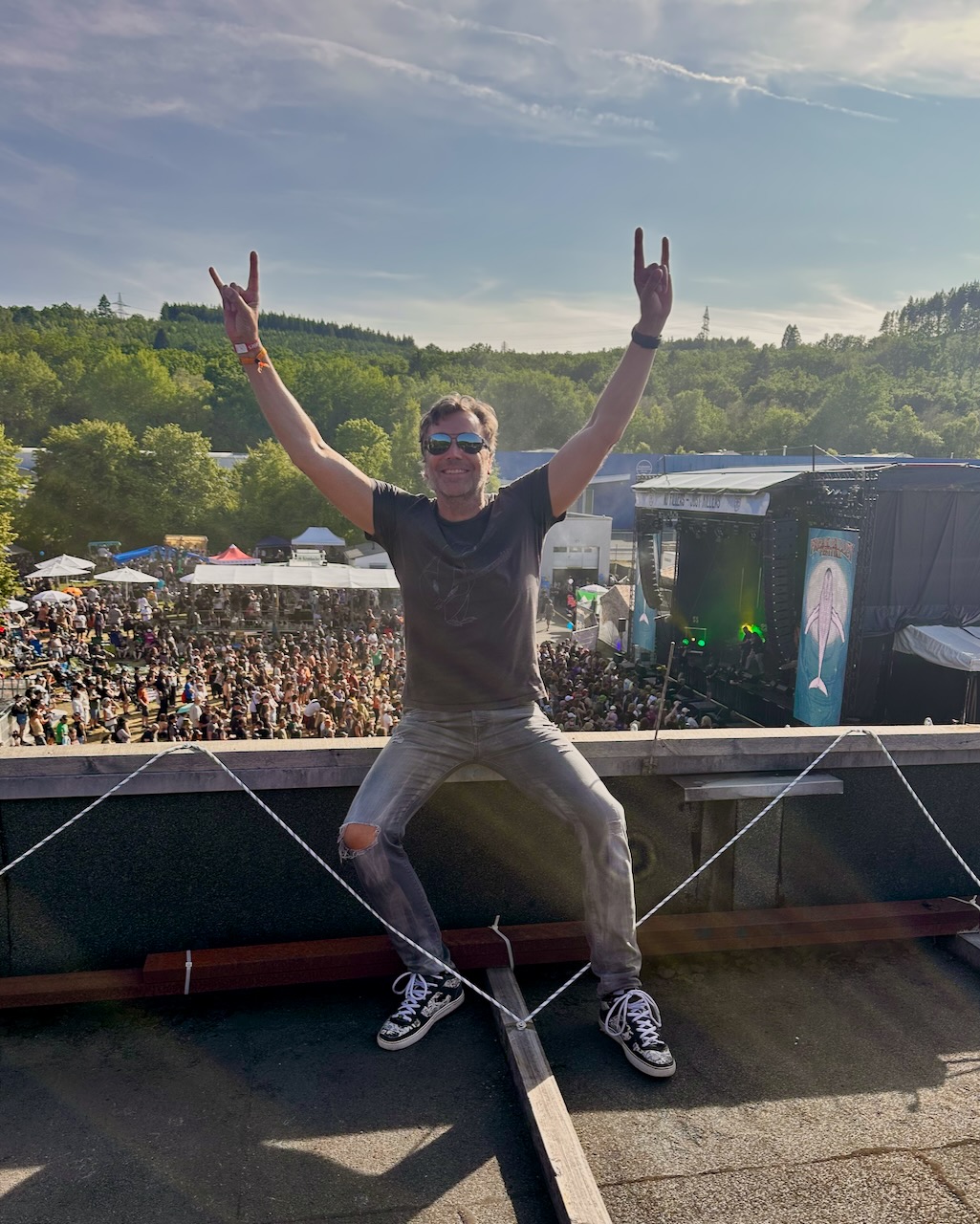 Aber weiter mit der Transformation. Check-In in der Pension Otto, gefühlt pro Neuankömmling ein Wiedersehensbier, Outfit-Check, Taxibestellung und ab auf Festival. Wenn wir am ersten Tag am Tatort eintreffen, braucht es meist eine ganze Stunde, um alle Menschen, die man hier oft nur einmal im Jahr trifft, zu begrüßen. Am Ende dieser ersten Reise über das Gelände (zahlreiche weitere – teilweise auch Flugreisen – werden in den nächsten Tagen folgen) treffen wir immer Sabrina und Django aus Bremen – die – auch wie immer – links vor der Bühne stehen, nicht weit vom Bierstand und zumeist mit ihrer „Festivaltochter“ Zoe. Für die nächsten drei Tage sind wir fast wie eine Camping-Familie. Unsere wichtigsten Aufgaben: den Bands lauschen, Kritiken austauschen, fachsimpeln, Fotos machen, Bier trinken, lachen. Und das Ganze wieder von vorn…