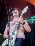 Als nächstes bekam die Freakgemeinde ein besonderes Schmankerl geboten. Die Australische siebenköpfige Band BATTLESNAKE bot ein abgefahrenes Heavy- Metal Spektakel, welches schwer zu beschreiben ist. In ihren skurilen Kostümen wirkten die Musiker wie aus der Hölle entstiegene Geistliche. Ihre Bühnenshow war wie eine Heavy Metal Revue mit viel Hang zur Theatralik und Selbstironie. Dabei gaben die Jungs aus Downunder klassischem Metal zum besten. Explosives Schlagwerk und treibende Riffs , die am Ende im Infield endeten, bildeten den Rahmen für diese musikalische Parodie. Die Band war fies vor nix und bewies durchaus das sich Heavy Metal und Humor gut vertragen.