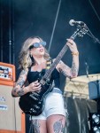 BUSHFIRE die Gelegenheit, die große Bühne zu entern, was sich als eine grandiose Idee erwies. Hier hatte der druckvolle Sound dieser Blues – Stoner – Doom Band genug Raum zur Entfaltung. Zur Kostprobe gab die Band die erste Hälfte ihres neuen Albums SNAKE BITE TALES zum Besten. Satte Riffs und ein markanter Gesang, gekoppelt mit fetten Beats ließen mich von einer Motorradtour durch Siegerland träumen. Immer schön am Gas durch die Kurven und auf der Geraden wieder beschleunigen. Die ursprünglich aus Darmstadt stammende und mittlerweile international besetzte Band verstand es, vom ersten Moment an zu überzeugen. Das Infield fing zum ersten Mal an zu kochen und nur die Sprühnebel produzierende Schneekanone versprach Abkühlung. Dabei war noch nicht Nachmittag und der Zenit der Hitze noch nicht erreicht.