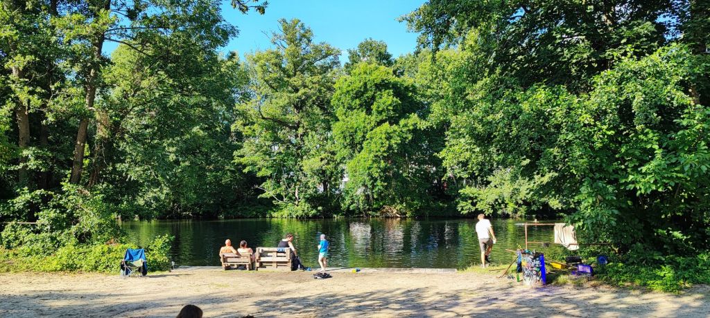 Am Strombad angekommen, streift mich gerade noch der letzte Ton von RIFFTREE. Die kleine Bucht glitzert in der Sonne, ein paar Festivalgäste planschen im Wasser, andere dösen im Schatten. Die Camping-Szene hat längst wieder Fahrt aufgenommen – hier ein Grill, da ein Joint, dort ein liebevoller Streit um die Sonnencreme. Die Badestelle ist und bleibt das Herzstück dieses wunderbaren Settings: familiär, friedlich, frei.