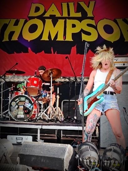 In Berlin hechte ich auf Gleis 12 in den RE2, lande um Punkt 16:02 Uhr in Cottbus. DAILY THOMPSON starten um 16:30. Tasche über die Schulter, Sprint zur Unterkunft, Zeug aufs Bett geschmissen, weiter – durch die Nachmittagshitze, Puls auf 180 – Richtung Strombad. Ich komme an, als der zweite Song durch die Baumkronen weht. Immerhin: Ich höre ihn schon beim Anstehen am Check-in. Festivalmodus aktiviert.