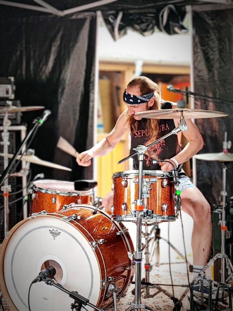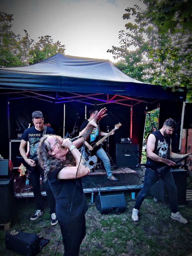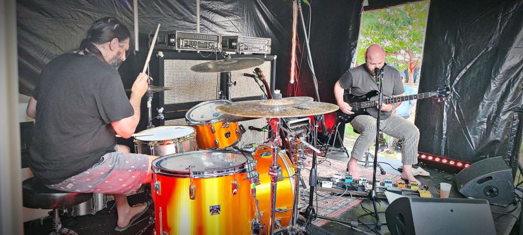 Inzwischen füllt sich das Gelände spürbar, ich schätze rund 800 Besucher – Tendenz steigend. Zwischen Main- und Sidestage ziehe ich mit dem nächsten Bier los. Dort walzen sich BEEHOVER durch ihren basslastigen Stoner-Doom – nur Bass und Drums, aber mit maximaler Wirkung. Weniger spaced out als Alber Jupiter, reduzierter als Grin, aber mit hypnotischen Sludge-Mustern, die meiner Linsen-Bolo schön nachsacken helfen.