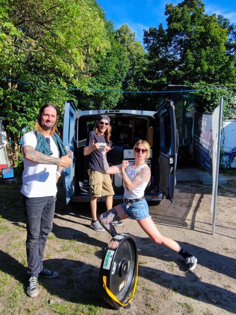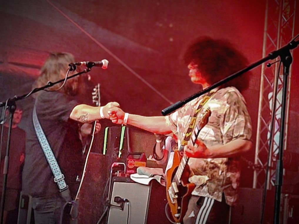 Gästeliste: easy (Danke, Matte!). Kurz danach das erste Bier in der Hand. Mephi grinst die Mainstage platt, Danny massiert die Gibson, und Babblz macht das, was Babblz eben macht. Heimatgefühl. Ich tauche ein, lasse die Zugodyssee los. Strombad-Wiese unter den Füßen, Bier im Anschlag, Fuzz im Ohr – alles, was zählt. Falkos Sound: großes Kino. Die Crowd groovt und dankt. Danach: schwitziges Lachen, klebrige Küsschen, Umarmungen satt. Dortmund zu Gast in Cottbus – wie ein Auswärtsspiel mit Herz.