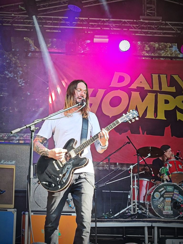 Wieder zurück an der Mainstage: DIRTY SOUND MAGNET. Die drei Schweizer – Marco, Maxime und der hypnotisierende Frontmann Stavros – feiern ihren ganz eigenen Weird Rock. Funk, Psychedelia, Art-Rock – alles ist drin, alles kann jederzeit kippen. Ihre aktuelle Single „Dead Inside“ fügen sie souverän ins Set ein, genauso wie ein nahtlos eingewobenes Paranoid-Tribute an Ozzy. Nichts wirkt aufgesetzt. Alles fließt, getragen von einem Groove, der sich wie ein halluzinogener Sog ausbreitet. Ich bin drin – voll und ganz – und merke fast zu spät, dass ich meine Kräfte einteilen muss. Da kommt noch was. Und zwar gewaltig: My Sleeping Karma und Melvins stehen noch auf dem Zettel.