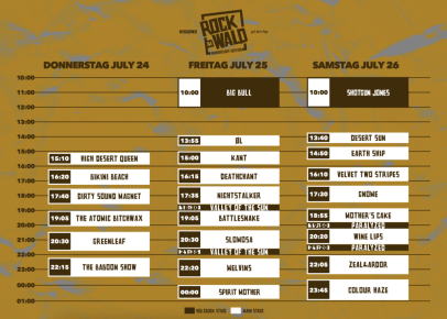 (vo) Rock im Wald 2025: diese Institution in Sachen Festival der Doom, Hardrock, bißchen Metal, Punk, Psychedelic- und Stonerszene feierte vom 24.07. – 26.07.2025 das 30-Jährige. Dazu von dieser Stelle hier vom wackeren Schreiber des RockBlogBluesSpot: Herzlichen Glückwunsch und natürlich auch weiterhin alles Gute! Nach mal wieder einer erlebnisreichen Fahrt über die A 3 (SUV´s, in deren Kofferraum mein Twingo passt, bescherten mich reichlich) ging es mit Zwischenstation in Geiselwind (leckeres Mittagessen bei einer lieben Freundin, die mich dann nach Michelau begleitete) nach Oberfranken: wir hörten schon die ersten Klänge von High Desert Queen. Nach dem Empfang meines Visums zum Einlass ins Festivalgeschehen sah ich auf dem musikalischen Teil des Geländes erstmal grün! Dieser Rasen, dieses grün und was für eins. Mutter Natur und beste Pflege gingen mal wieder eine großartige Koalition ein: was für ein Grün!