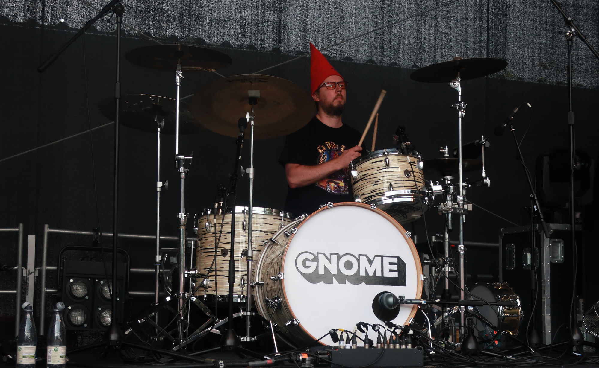 Belgien schickte dem Festival die Gnome und die Drei aus dem Pommesparadies punchten und drückten und donnerten sich ihren Stoff aus Stoner und Metal durch die roten Kegelmützen. Und links standen zwei Wasserbehältnisse deren Verschluß einem bayerischen Politiker Verdruß beschert weil er beim trinken keine Brille trägt und ihn so nicht nur der Deckel sticht? Man weiß es nicht.