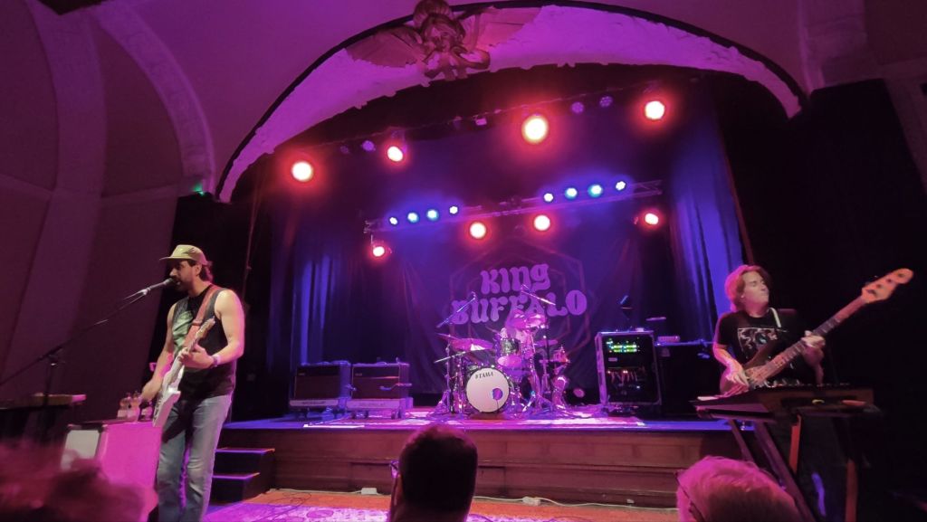 Nach einer angenehm kurzen Umbaupause hieß es: kurz im Biergarten abkühlen – und dann zurück in den dicht gefüllten Saal. Die Luft glühte, es war klebrig, aber voller Erwartung. King Buffalo aus Rochester (NY) hatten das Piano komplett in der Hand. Wer die Band kennt, weiß: Das hier ist keine Jam-Truppe, die sich spontan treiben lässt. King Buffalo sind durch und durch perfekt eingespielt. Jede Note sitzt, jedes Break wirkt wie chirurgisch gesetzt, ohne dabei den Flow zu verlieren.