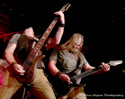Sie begannen Ihre Show mit „Exiled“ vom neuem Meisterwerk. Der Song elektrisierte sofort die Fans. Das Keyboard-Spiel von Jan Christian Halfbrodt war top virtuos. Klaus Dirks thronte mit seiner majestätischen Stimme über der Mucke. Beim folgenden „Future Loom“ duellierten sich die Gitarreros Sven Lüdke und Florian Dyszbalis gigantisch. Die Rhythmus-Granaten waren bei „Lord Of The Madness“ Trommler Sebastian Schmidt und Basser Markus Brinkmann. Der Song manifestierte zugleich welche herausragenden Kompositionen das Markenzeichen von Mob Rules sind. Dabei wechselten sich schnelle und langsame Passagen ab.