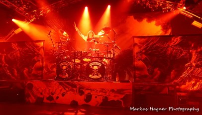 „Nuclear Fire“ bestach durch den „Speedy“ Rhythmus. „The Hunter“ war das magische Highlight im Set, Mister Scheepers Gesang war dabei „Over The Rainbow“. Bei „Tears Of Fire“ bangte die Band, vor allem Thalia gemeinsam mit den Fans. Magisch war die Zelebration von „King Of Madness“ und „Hallucination“mit elektrisierender Songstruktur: dem Wechsel von melodischen und aggressiven Segmenten. Mit „Fighting The Darkness“ manifestierten Primal Fear, dass Sie auch Maestros von mystischen Balladen sind. Mit der Hymne „Metal Is Forever“ endete das offizielle Set. Orkan-Jubel orderte die Band zurück auf die Bühne um mit dem epischem „Running In The Dust“ die Show glorreich zu beenden.