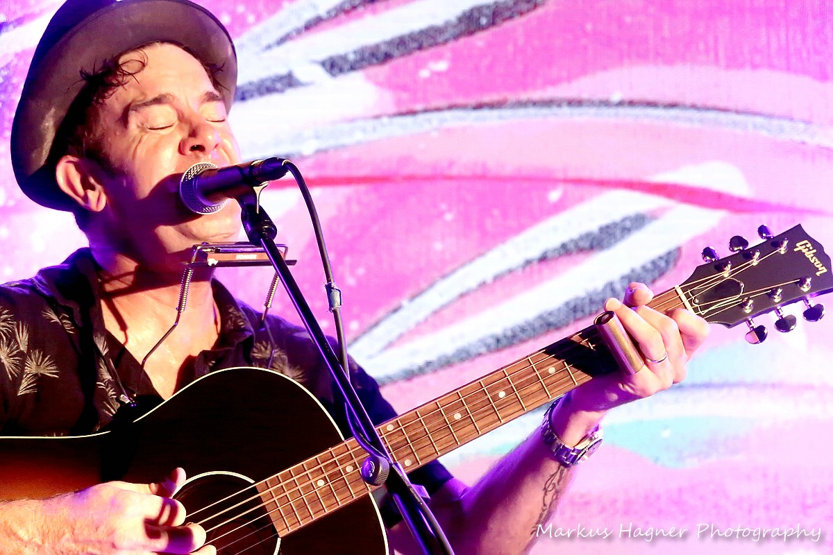 G. Love aus Society Hill, einem Stadtteil von Philadelphia, U.S.A.eröffnete seinen „Solo-Gig“ mit dem funkigen „The Things That I Used To Do“. Er zelebrierte seine Show mit Akustik-Gitarre auf der er mit seinem Slide-Gitarrenspiel punktete. Das Highlight war aber immer, wenn er auf seiner Mundharmonika brillierte. Im Hintergrund wurde auf der großen TV-Wand „Love“ projeziert. Das folgende „Blues Music“ manifestierte die musikalische und gesangliche Vielfalt mit RAP-Gesang, konträr dazu die „Bluesy laidback Tunes“. G. Love war auch ein brillanter Entertainer und „Storyteller“ vor jedem Song.