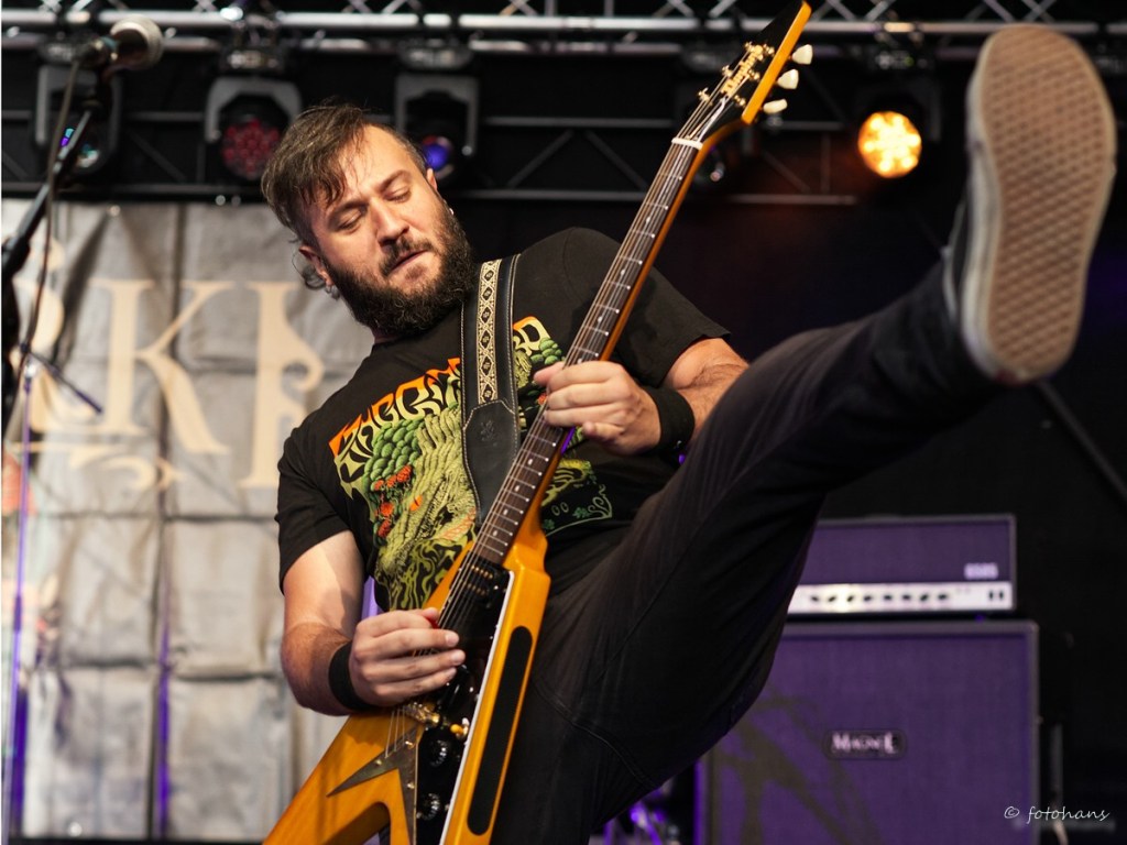Über Sacred Steel viele Worte zu verlieren macht eigentlich keinen Sinn. Jeder Umtriebige auf den einschlägigen Festivals weiß, hier ist der pure Spaß gepaart mit Einstellung und Können auf der Bühne. Seit dem MOA 24 ist ein Cover Song für mich ein Highlight, der so geballt rüber kommt, dass es einen fast weghaut: „Pull The Plug“. Beim SC hat er es von der Zugabe ins normale Set geschafft. Anschließend gratulierte ich Gitarrist Jonas Khalil noch zur CD „Kharakter“, die seine Seite des klassischen Gitarristen zeigt. Ein verwundert, schmunzelnder Blick seinerseits zeigte seine Überraschung. Checkt die mal an, Jonas ist ein hervorragender Klassik Gitarrist (Archivfoto).