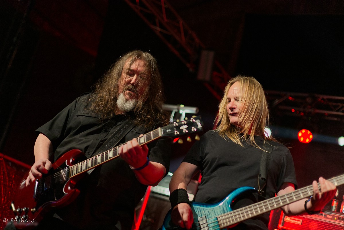 Der Freitags Headliner war Satan. Sie haben neben dem charismatischen Sänger mit Entertainer-Faible, Brian Ross, mit das beste Gitarrenduo welches aus der NWOBHM entstanden ist: Russ Tippins und Steve Ramsey. Einfach toll, welche Kanonaden die beiden abfeuerten. Leider hatten sie den Slot nach Dead Lord und spielten vor einer halb gefüllten Halle. Das machten sie aber großartig und professionell.