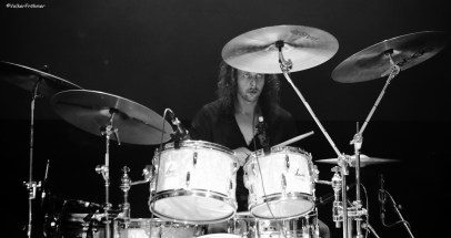 Zuletzt habe ich sie im Juni auf der großen Bühne beim Freak Valley Festival gesehen. Und heute genieße ich insbesondere den guten Blick auf das Schlagwerk von Philip Knöfel: ein Traum in weiß.