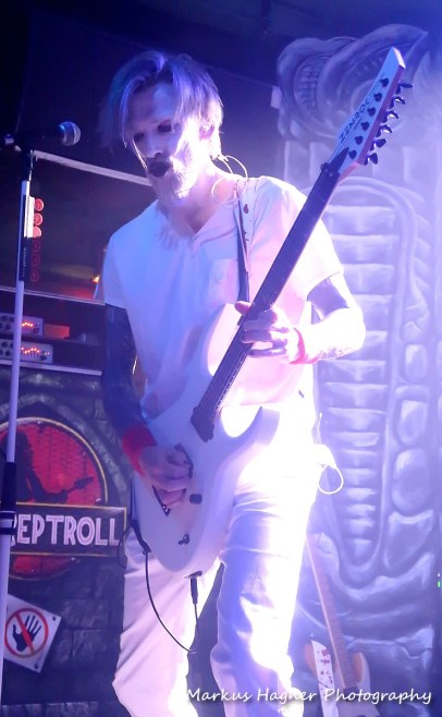 Blood White begeisterten die Fans vom ersten Ton an mit „Don*t Blame Me“- Die Mélange aus Modern- & Industrial Metal, Rock und Hardcore hatte live schon seinen besonderen Reiz. Das melodiöse Gitarrenspiel von Mr. Bonesaw und D.C. Spark wurde live konträr zu den harten Rhythmus-Riffs von Luke Y-Cut an den Drums und Gas Gee am Bass zelebriert. Über allem regierte die imposante Stimme von Dr. Zero. Für den Horrror-Effekt sorgten die weißen Kostüme und Masken. Das folgende „Unholy Water“ war der Song für die Headbanger, ein absoluter Nackenbrecher. Die Refrains waren geeignet für die Fans zum Mitgröhlen. „Run Of Run“ war das Highlight im Set, das jeden Rammstein Fan verzückte. Mit „Guns And Fear“ mit virtuosen, melodiösen Gitarrensoli und groovigem Ryhthmus endete die Show. Die Fans waren begeistert und Blood White dürften mit dieser eine Menge neu Fans gewonnen haben.