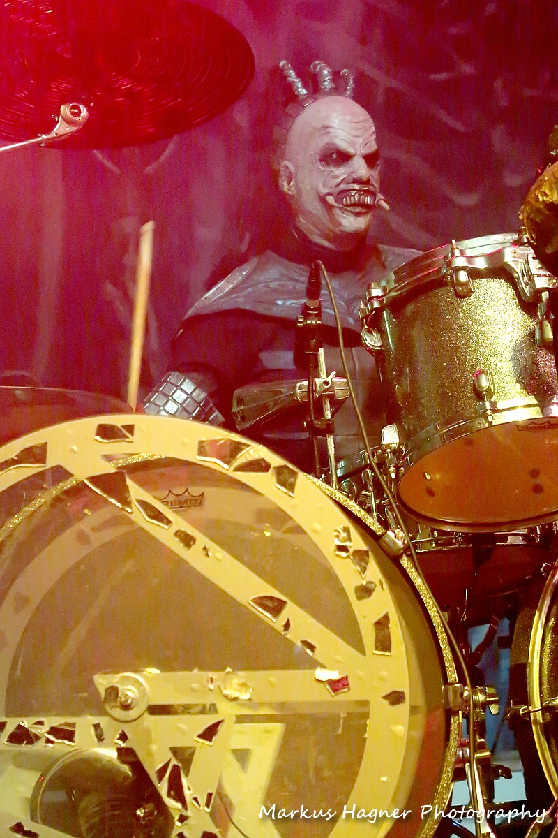 Mana bewies folgend mit seinem Schlagzeug-Solo, welcher Maestro er beim Schwingen der Trommelstöcke und beim „Double-Bass-Drumming“ ist. „Beast Of Both World“ unterstrich die musikalisch stilistische Vielfalt mit „Industrial Metal“ Attitüde. Lordi sang sich dabei den Teufel vom Leib. Das Keyboard-Solo von Hella war erneut klassisch inspiriert und Kone sorgte erneut für funkelnde Augen bei seinem Gitarrensolo. Klassischer Hard-Rock mit spannender Songstruktur wurde bei „Hellizabeth“ zelebriert. Ein höllisches Bass-Solo folgte danach durch Hiisi. Bei „Blood Red Sandman“ spendete Sandmännchen Lordi den Fans einige Tropfen Blut.. „Would You Love A Monsterman folgte und keine Frage: die Ladies würden sich Lordi auf jeden Fall als Kuschelmonster mit nach Hause nehmen, hihihi… Zum „Grande Finale“ folgte „Hard Rock Halleujah“ als Monster-Hit bei dem Lordi sein göttliches Beil schwang.