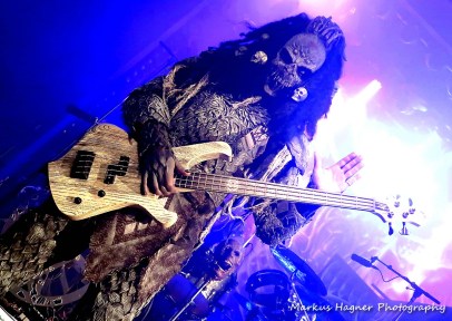 Gitarerrero Kone zelebrierte dabei sein erstes Soli und bewies, dass er eindeutig der facettenreichste Sechs-Saiten-Magier der Band-Historie ist. Maestro Lordi regierte mit seiner gewaltigen Stimme über der Musik. „Girls Go Chopping“ folgte mit donnerndem Rhythmus und Tornado-Gesang von Lordi. Mitreißend war auch der Background-Gesang der kompletten Band. Als Drittes folgte der Band-Klassiker „Who’s Your Daddy“, Lordi hatte dabei leichtes Spiel um die Freaks zum Mitgröhlen zu animieren.