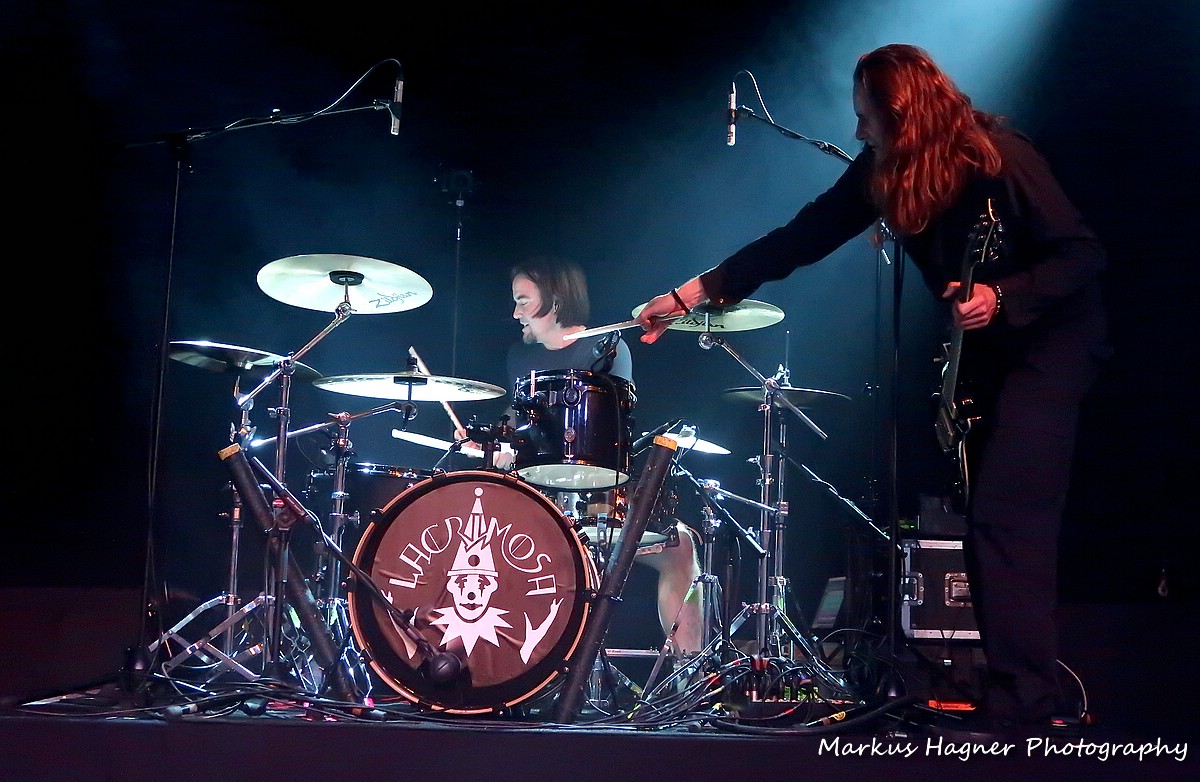 JP Genkel an der Gitarre bot dabei ein mitreißendes Gitarren-Soli dar. Thilo’s powervolle Stimme regierte im Duett mit Lara über der Musik. Julien Schmidt finalisierte mit seinem Schlagzeug-Spiel powervoll den Song. Mit der Ballade „Der Morgen Danach“ verzauberten Lacrimosa die Fans. Yenz Leonhardt bestach dabei mit seinem Bass-Spiel. „Lament“ der Longplay-Titelsong von der gleichnamigen, aktuellen CD war die Kulmination im Set, durch den magischen Gesang von Thilo und die sensitive „Instrumental-Performance“ im ersten Teil, der spannenden Songstruktur und dem hymnenhaften Charakter im zweiten Teil.