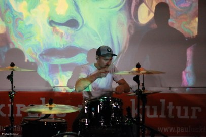 Zum Abschluss: Major, das Trio aus Regensburg, das mit seinem selbstbetitelten Debüt (Release August 2025) direkt eingeschlagen hat. Joe (Guitar/Vocals), Marco (Bass) und Hannes (Drums) spielen, als hätten sie Lava im Blut und Metronome im Kopf. Major waren für mich die Überraschung des Abends – einmal mehr bewahrheitete sich: Never judge a book by its cover. Die drei wirken auf den ersten Blick nicht, als würden sie zusammengehören, doch was sie dann energetisch auf die Bühne zauberten, riss selbst die zu sehr vorgerückter Stunde nur noch halbgefüllte Kirche mit. Ihre Spielfreude wirkte ansteckend, ihr Zusammenspiel roh und lebendig – ein Finale, das nachwirkte.