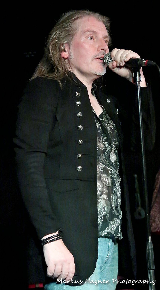 „The World Is Mine“ mit heavy Prog-Rock elektrisierte die Fans vom ersten Ton an. Ausnahme-Sänger Michael Dorp zog diese sofort in seinen Bann. Die spannende Song-Struktur war zusätzlich faszinierend. Beim folgenden „Fire I Wanna Go“ war Gitarrist Michael Rick herausragend mit seinem bluesigen Spiel. Konträr verzauberte Mister Dorp die Freaks mit seinem einfühlsamen Gesang. „Green“ war der erste Song vom neuen Album im rhythmischen Latino-Sound im ersten Teil. Rüdiger Blömer glänzte dabei mit seinem Keyboard-Spiel. Im Mittelteil wurde ein Progressive-Rock Jam „par Excellence“ dargeboten, mit jazzigem Einfluß.