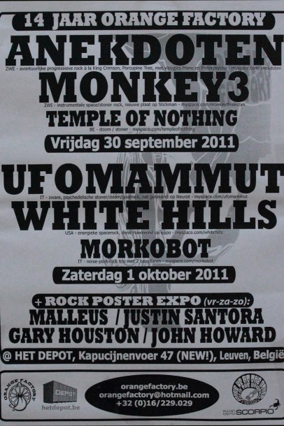 Vorhang auf für Monkey3: Boris – Gitarre, Growlgesang, Guillaume – Soundboard Derwisch, Jalil – Bass und Walter – Schlagzeug betraten locker und lässig die Bühne, begeistert empfangen von vielen, beinharten Fans, die, so wie ich, diese Band vergöttern. Seit ich sie das erste Mal beim Orange Factory Festival 2011 in Leuven in Belgien erlebte bin ich ihnen verfallen.