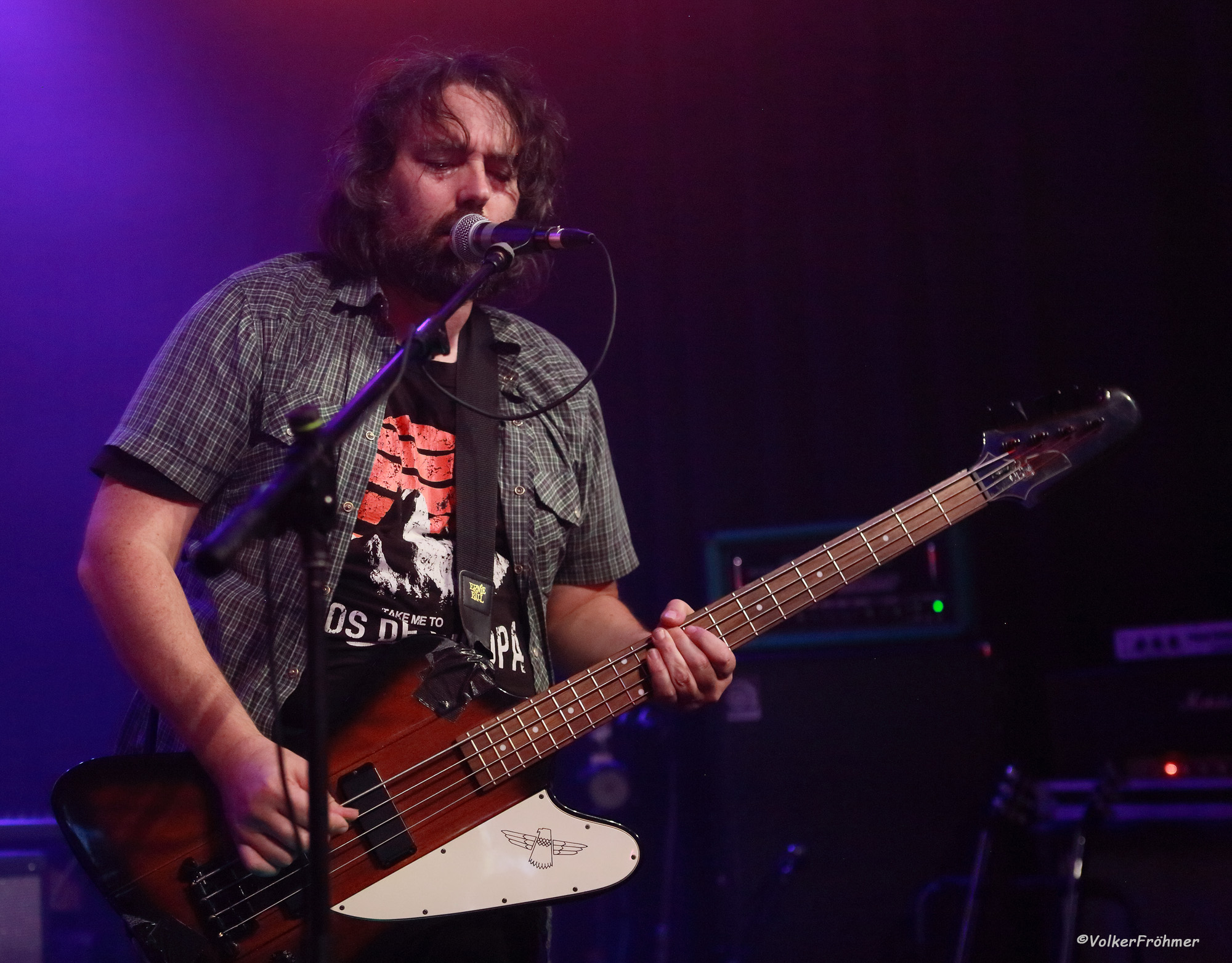 Julien Pras als ruhiger Pol in der Mitte spielte dabei wie immer recht unaufgeregt die feinsten Melodien, unterstützt von seiner meist falsettartig klagenden Stimme und stärkstens kontrastiert bzw. konterkariert durch Jimmy Kinast´s heftig verfuzztes Basswummern und Mathieu Gazeau´s druckvolles Pflegen seiner Trommelfelle.