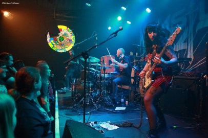 Ihre gesamte Show, die von einigen Performances einer weiblichen Figur in verschiedenen Kostümen wie z.B. einem Wolfkostüm zusätzliche Dramaturgie erfuhr, lud ein zu inneren Vorbeimärschen, zu phantatischen Erlebnissen, zu innigen Begegnungen in einer dir eigenen Welt. Ich war ziemlich beeindruckt und im rechteckigen Club ging es während des ca. 75-minütigen Auftritts schwer rund im Publikum: wahre Verehrung würde ich schreiben. Zauber, Schwerter, großartige Outfits, goldener Trinkbecher, Magie, Breitwand Cinemascope. Und wenn ich, hoffentlich, nicht falsch liege, die Playliste: