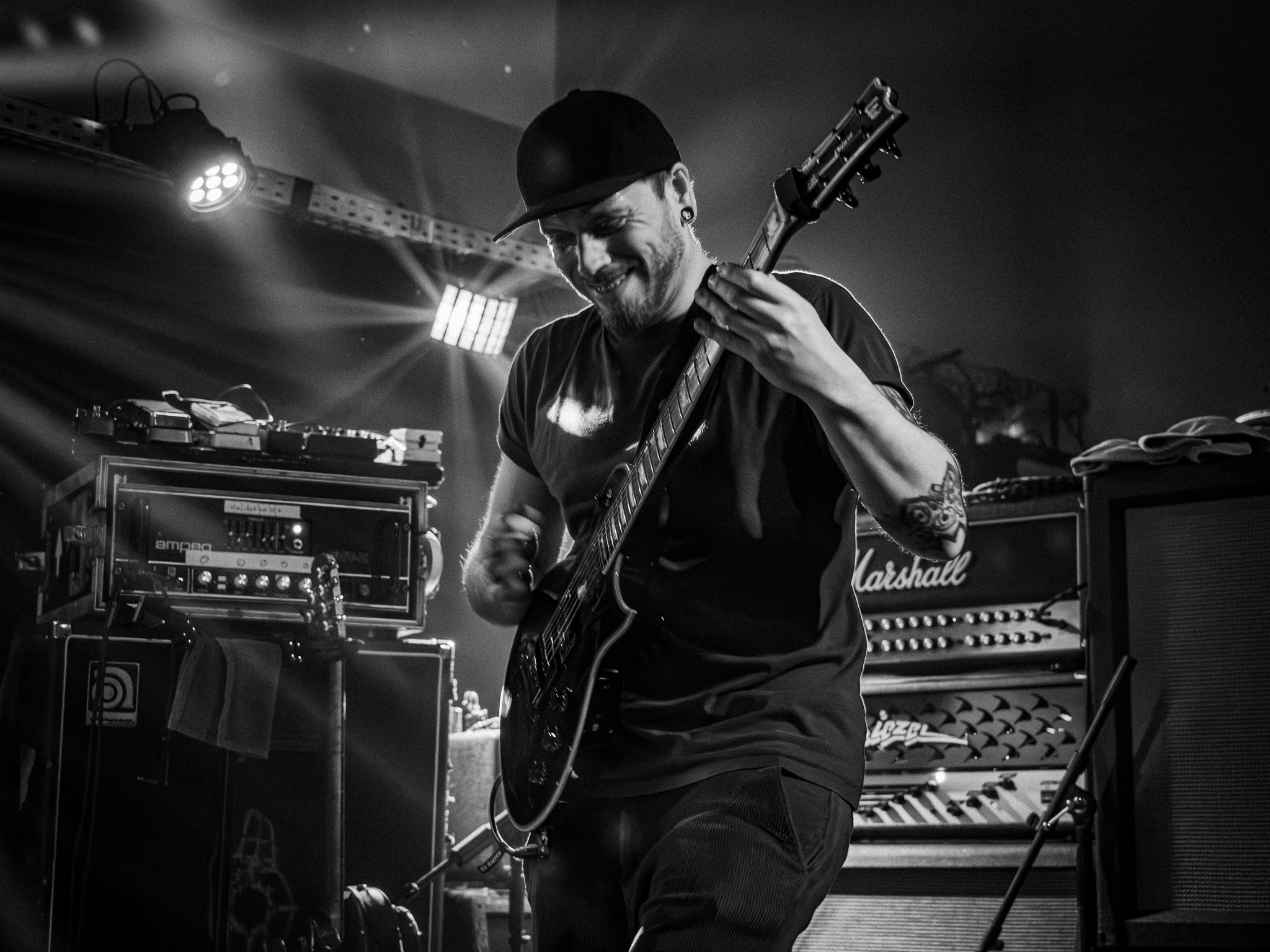 (text volker, alle photos mike) Samstagmorgen, 11 Uhr Ortszeit meldete die Alte Schlosserei „Ausverkauft“. Gut so in diesen immer noch schwierigen Zeiten nicht nur für Konzertveranstalter und Bands, sondern auch allüberall in dieser immer mehr verkorksten (verkoksten wäre bestimmt auch nicht so unwirklich), immer unmenschlicheren Welt die sich – hoffentlich – in nächster Zeit wieder in eine noch lebenswerte entwickelt: vernünftige, empathische, unextremistische, reformerische, nicht dem schnöden Mammon zugewandte Politiker: menschliche Politiker, die es ja immer noch gibt, aller Länder, macht was! Und an die schon vielen Abgewandten: Lasst euch nicht von den Totengräbern der Demokratie zuschaufeln…..And now for something completely different, nämlich zu den beiden Bands des Abends.