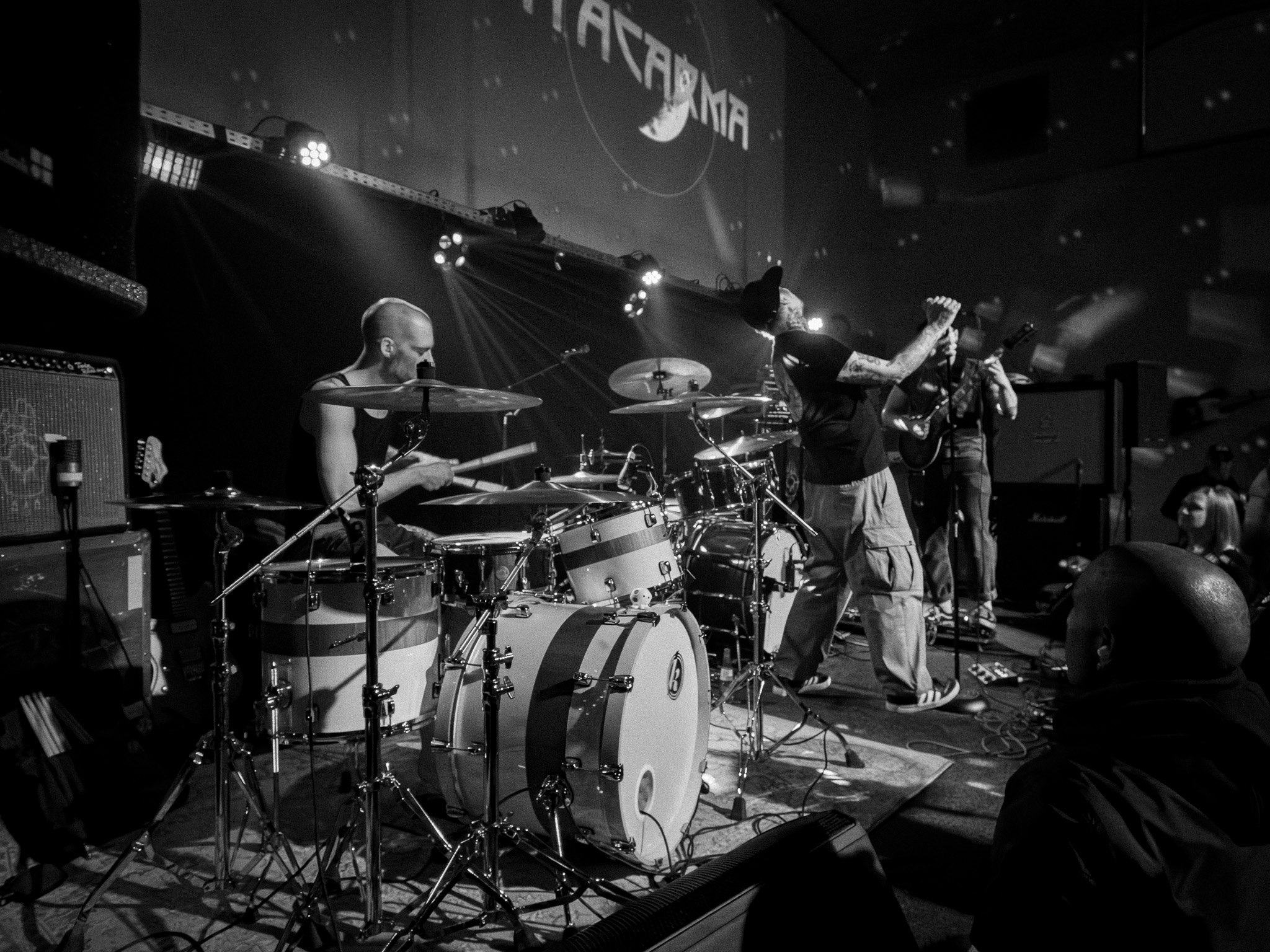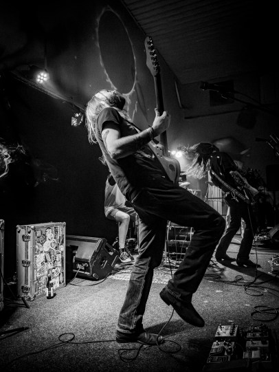 Wuppertal ist ja nicht so die Karnevalshochburg, auch seit 2019 Karnevalszug-los (der war hier immer Sonntagnachmittag), hat aber auch wie Köln ein Dreigestirn, eines in Sachen derber Stoner und der hat etwas besonderes: die tiefergelegten, berstenden Saitentöne stammen nur aus einer Gitarre, die unterstützt wird mit deftigem Schlagwerk und einer mit Sandkörner gegerbten Stimme, die auch manchmal schmirgelte wie der Kaiserwagen der Schwebebahn in einer der zahlreichen Kurven! Gut so. Die drei Jungs heizten also schonmal gut vor und wurden von den 150 Anwesenden für ihre Vorgehensweise in Sachen „heute abend findet die Generatorparty nicht in der kalifornischen Wüste statt sondern am Loh, woll“ gefeiert!