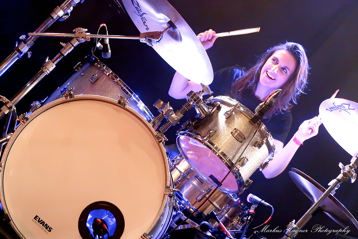 Bei „Not Your Story“ zelebrierte Laura auch Ihren ausdrucksstarken Gesang. Bei „Big Mouth Strikes Again“ wechselte Sie im Stile eines Popa Chubby von der Gitarre im überhellen Scheinwerfer-Licht an die Drums. Auch hier beherrschte Sie den korrekten, abwechslungsreichen Rhythmus und hatte sichtlich amüsiert und gefeiert Ihren Spaß daran. „Do I Have Your Attention? finaliserte mit tosendem Applaus nach Zugaben das offizielle Set. Mit dem herausragenden Titelsong als Live-Highlight vom aktuellen Album „Trouble Coming“ und „Hard Blues Shot“ als „Encores“ beendete Laura Ihre Show, phänomenal abgefeiert. Super sympathisch zum „Fan-Talk“ mit Autogrammen und Fotos präsentierte sich LC danach am Merchandise-Stand.
